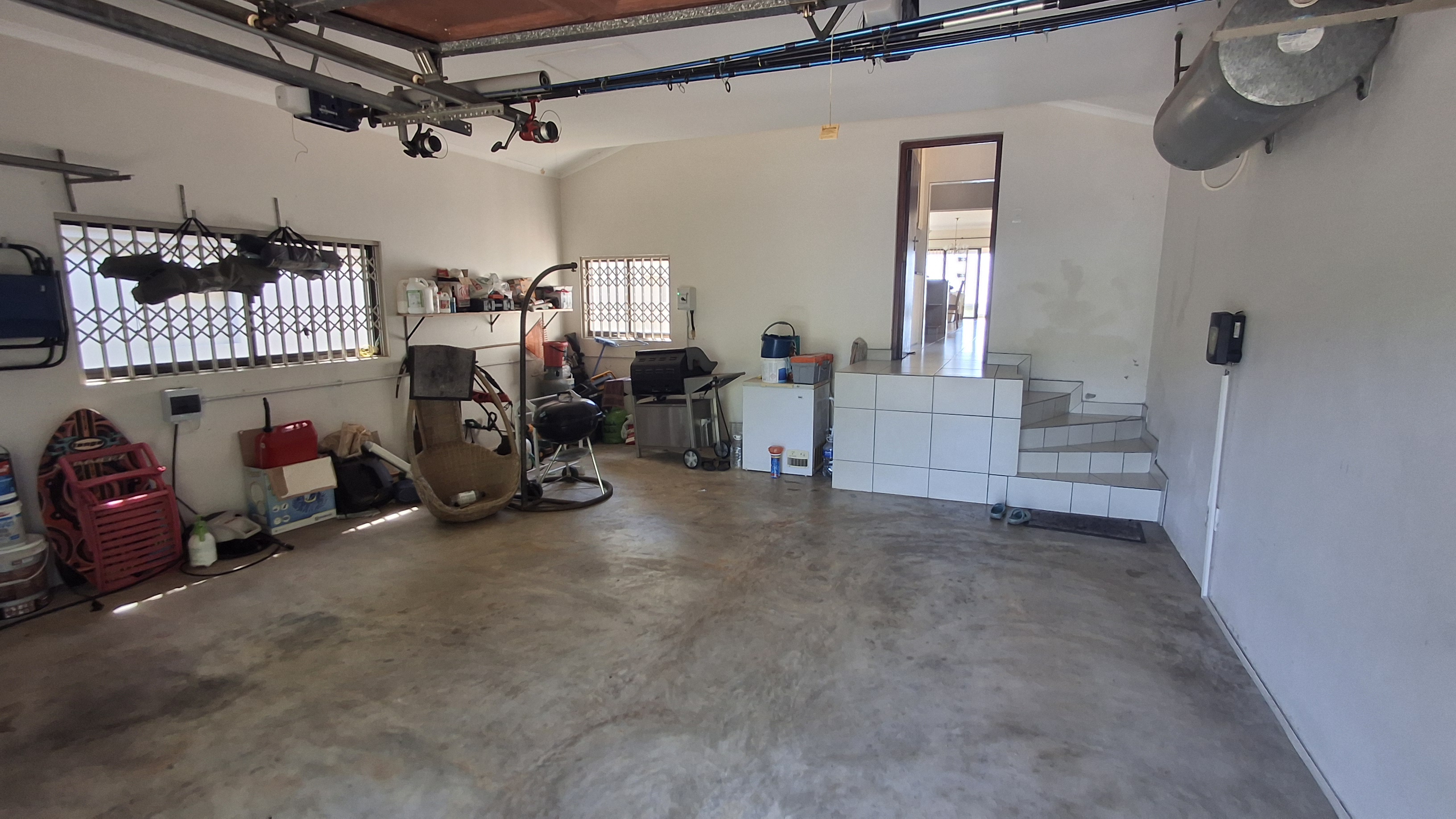 There is a spacious laundry area and a secure double garage with direct access into the house. The property is fully walled and fitted with an electric gate, electric fencing, an alarm system and security gates on all aluminium doors and windows. A backup water tank is connected to the house for peace of mind.