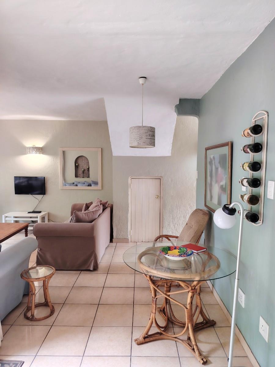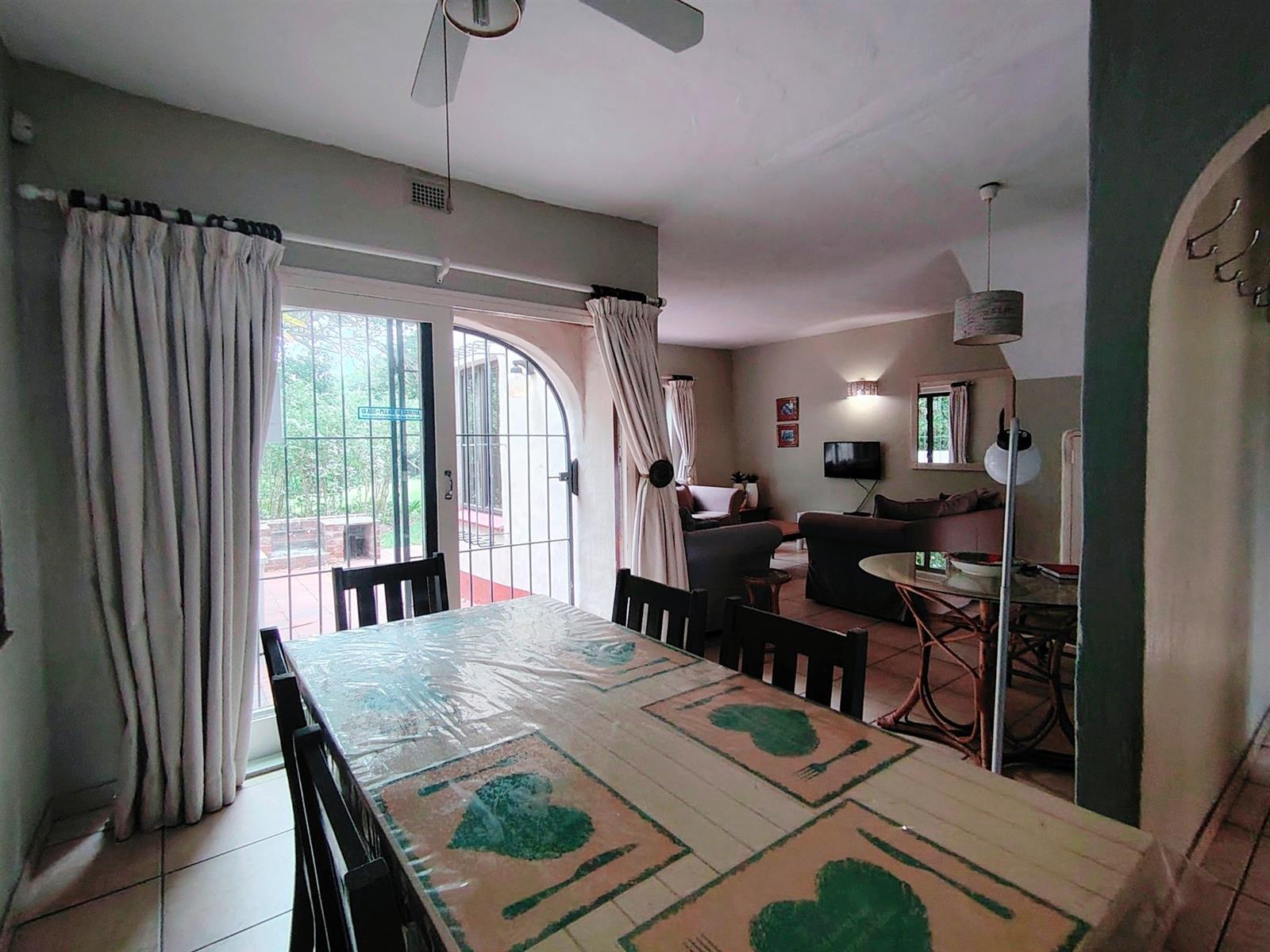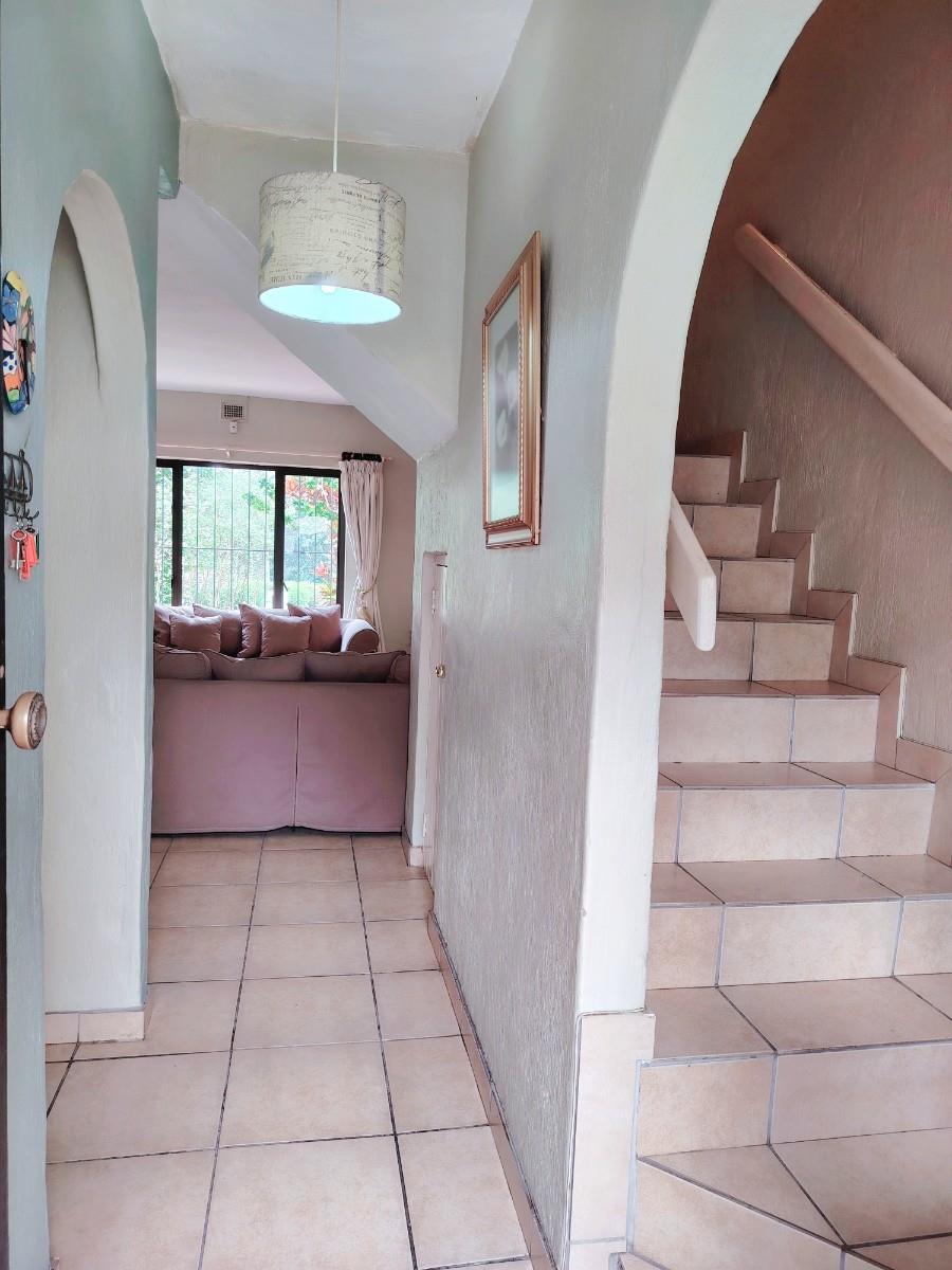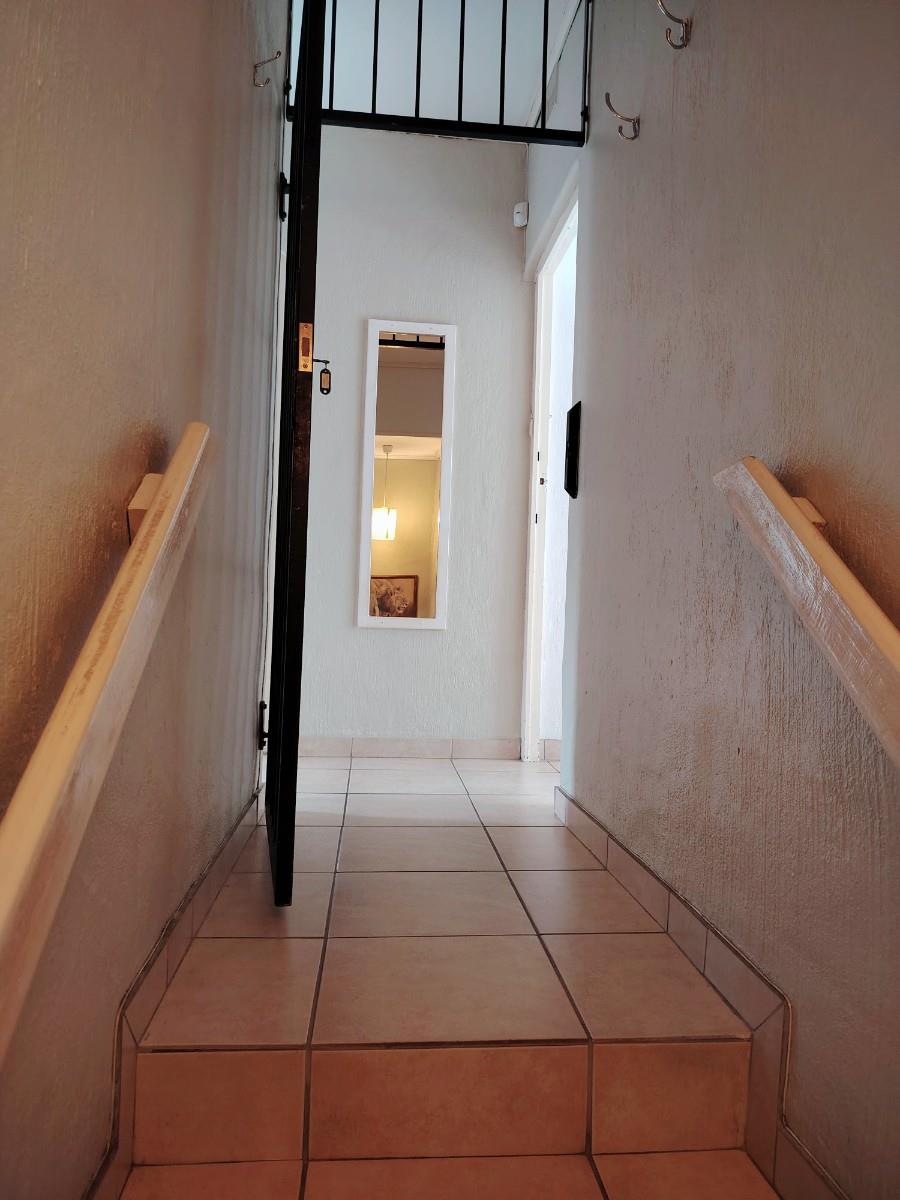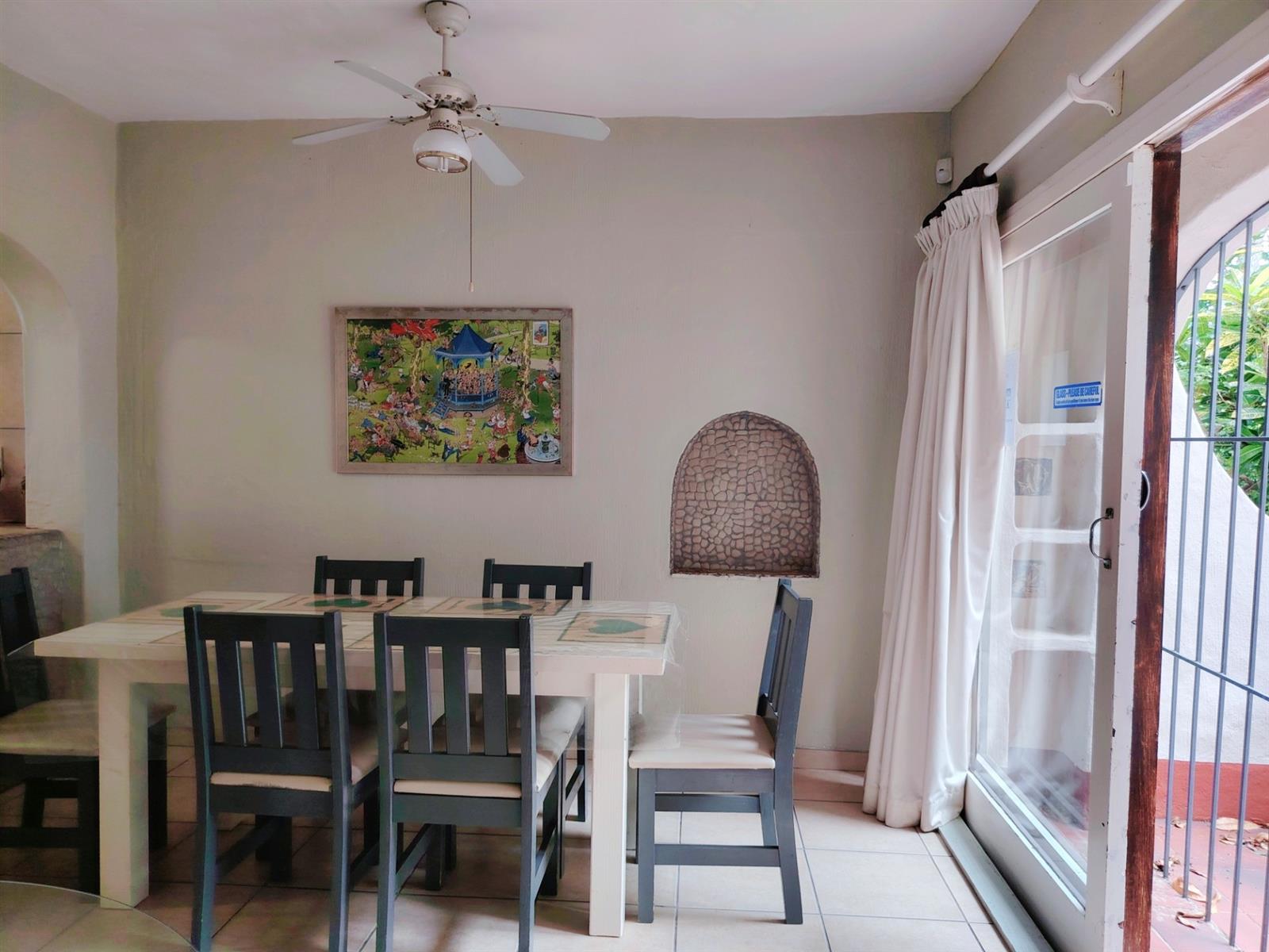 This cluster home is a duplex but also spacious and well cared for. As you enter the open plan living area you feel welcome and immediately pick up on the holiday vibe. The country kitchen is well equipped and laid out. You also have a powder bathroom on the lower level. The open plan lounge and dining room opens up to the private braai area. The kitchen courtyard is totally private with access to the garage and an outside shower. Upstairs is a full bathroom with a separate toilet and three spacious bedrooms.