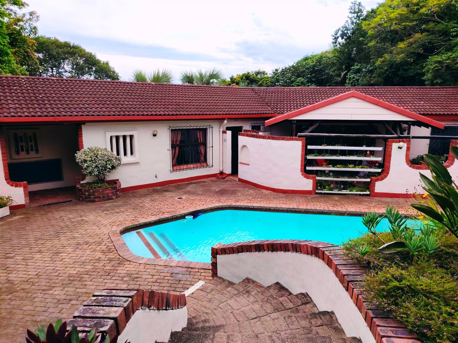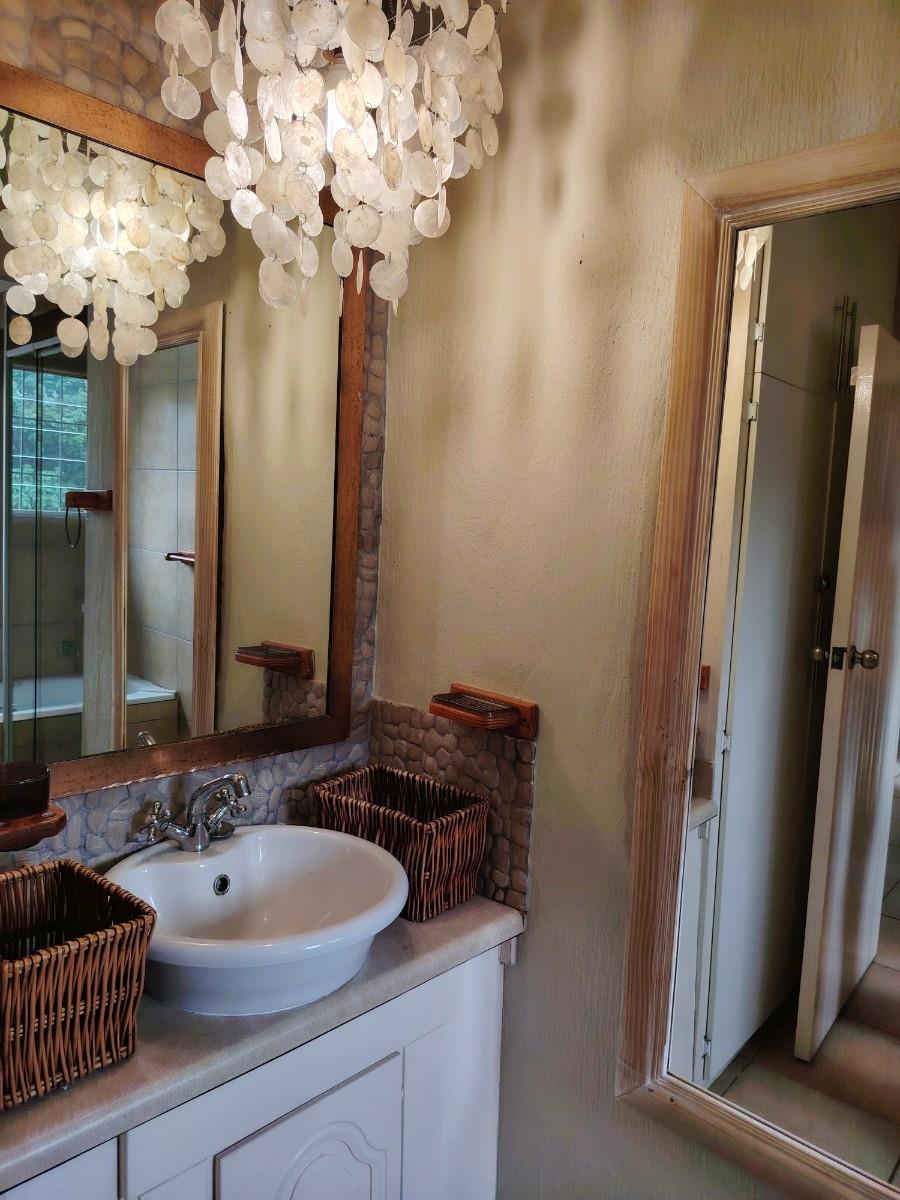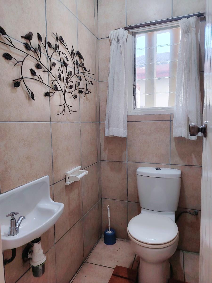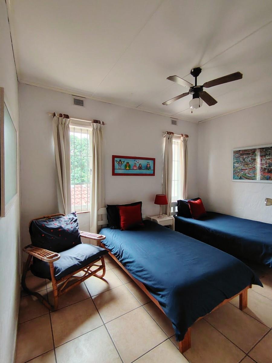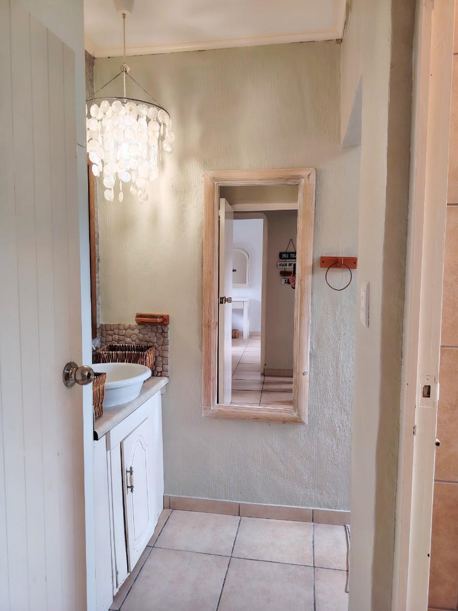 This cluster home is a duplex but also spacious and well cared for. As you enter the open plan living area you feel welcome and immediately pick up on the holiday vibe. The country kitchen is well equipped and laid out. You also have a powder bathroom on the lower level. The open plan lounge and dining room opens up to the private braai area. The kitchen courtyard is totally private with access to the garage and an outside shower. Upstairs is a full bathroom with a separate toilet and three spacious bedrooms.