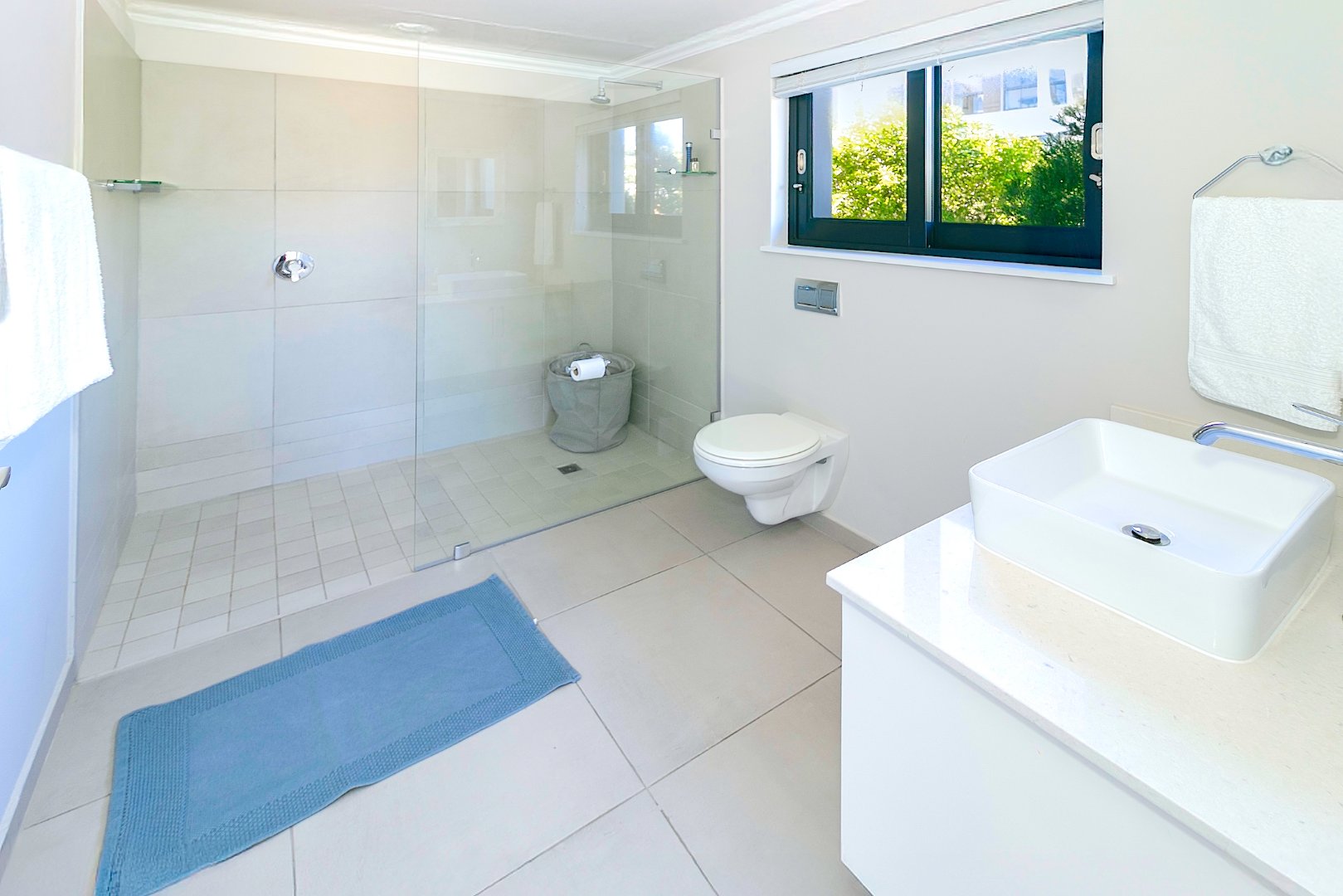 The two main bedrooms open onto a large view terrace — perfect for morning coffee or evening relaxation — while the third enjoys sunny north-facing aspects. Each bedroom is accompanied by a modern, elegant bathroom featuring quality fittings and clean architectural lines.