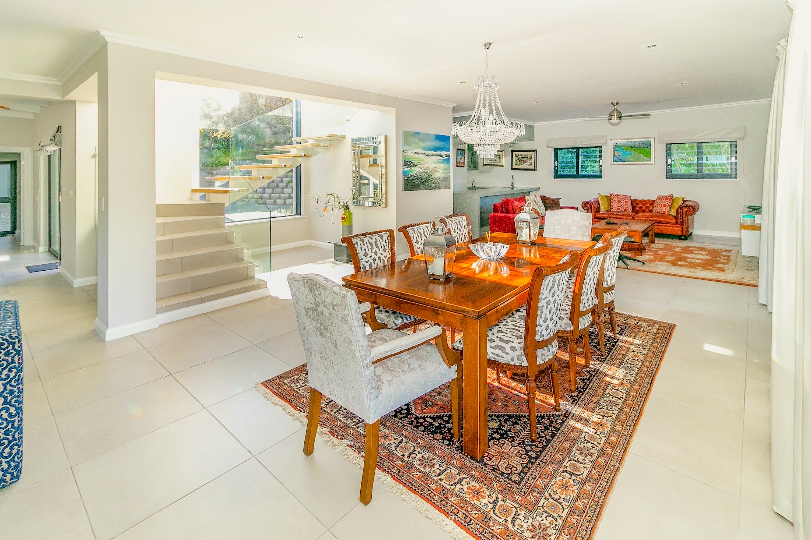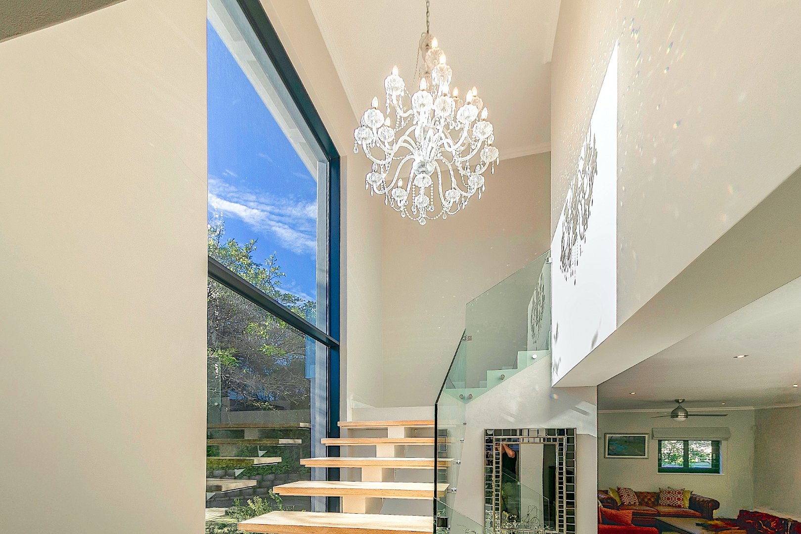 As you enter through the front gate, a sense of calm instantly washes over you. The path winds through an indigenous garden — immaculately maintained and artfully landscaped — setting the tone for the elegance that lies beyond. The home is designed with meticulous attention to detail, and exudes understated luxury. Soft neutral tones and high-end finishes create a peaceful, cohesive interior that blends effortlessly with the natural surroundings. Floor-to-ceiling windows frame the panoramic views and flood the home with natural light, inviting the outdoors in and enhancing the tranquil ambiance.