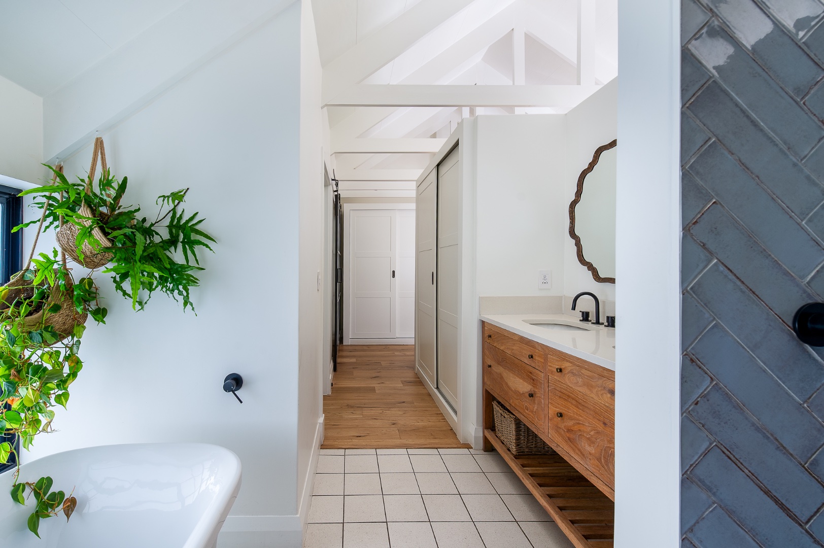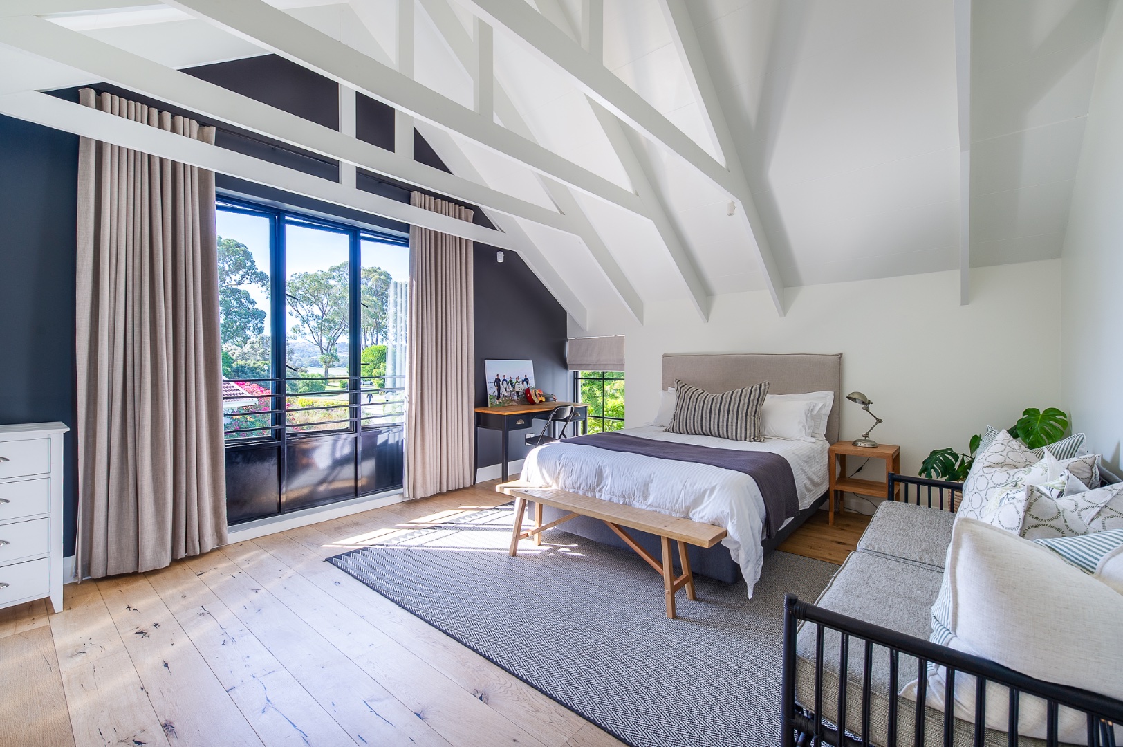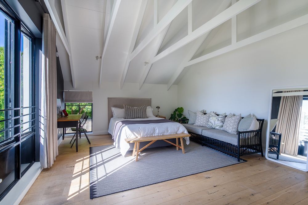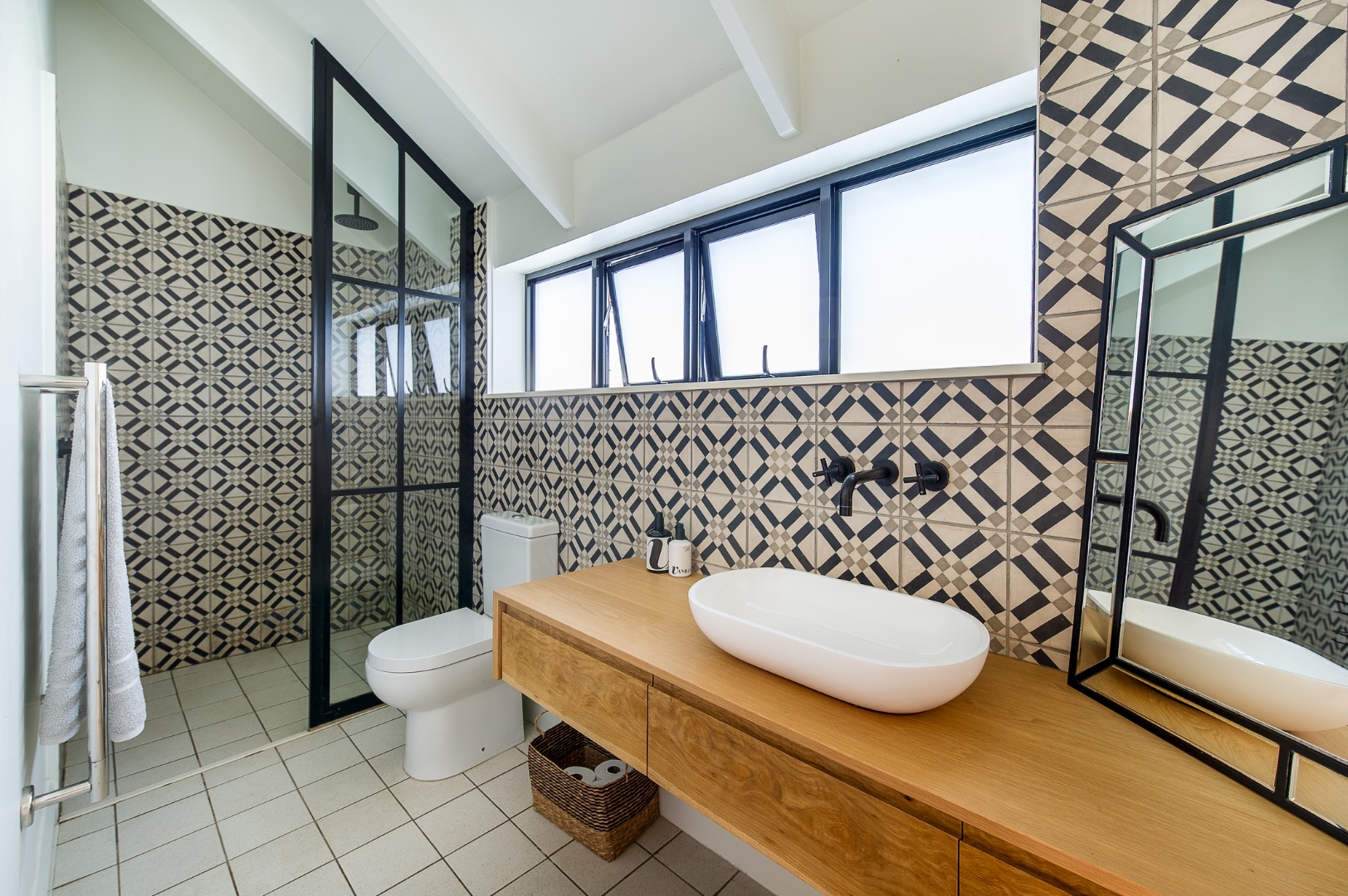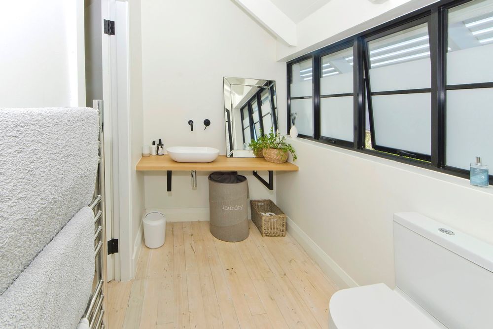 Upstairs, open truss ceilings frame airy rooms and natural light floods in through glass doors and Juliet balconies. 3 spacious en-suite bedrooms and office space on offer. A bonus separate entrance self-contained flatlet adds income potential or as a private guest retreat.