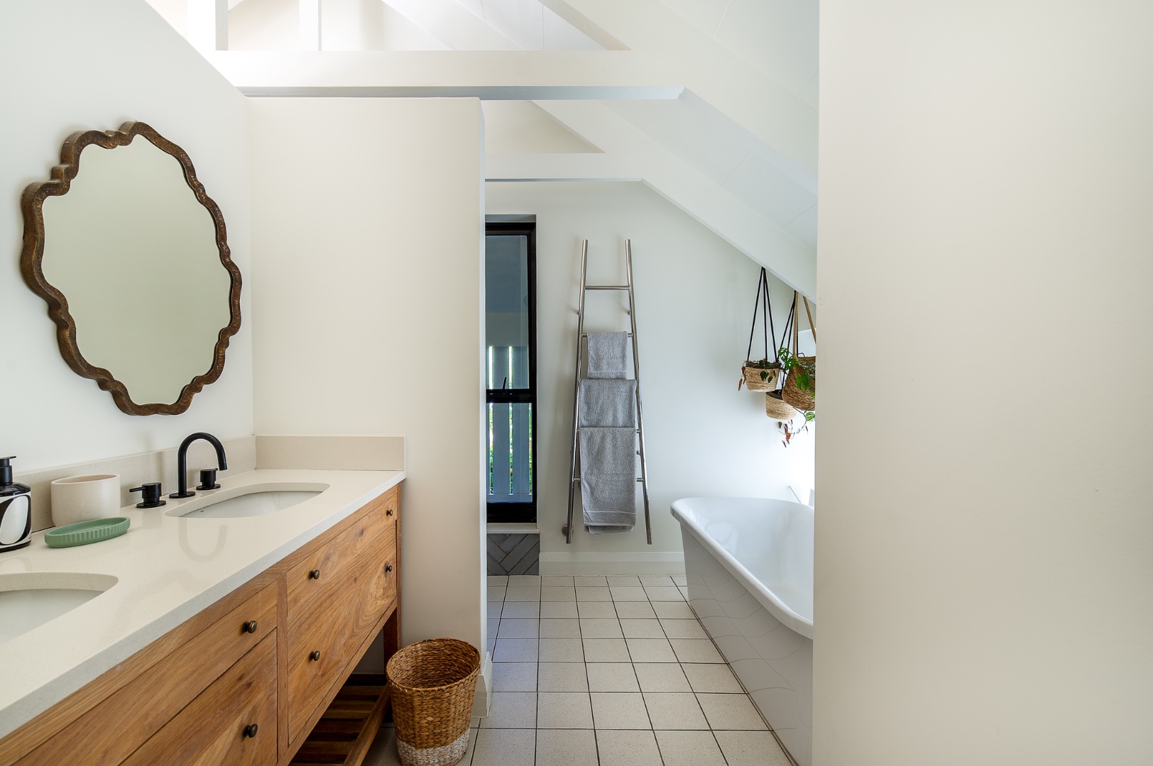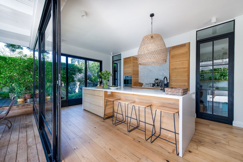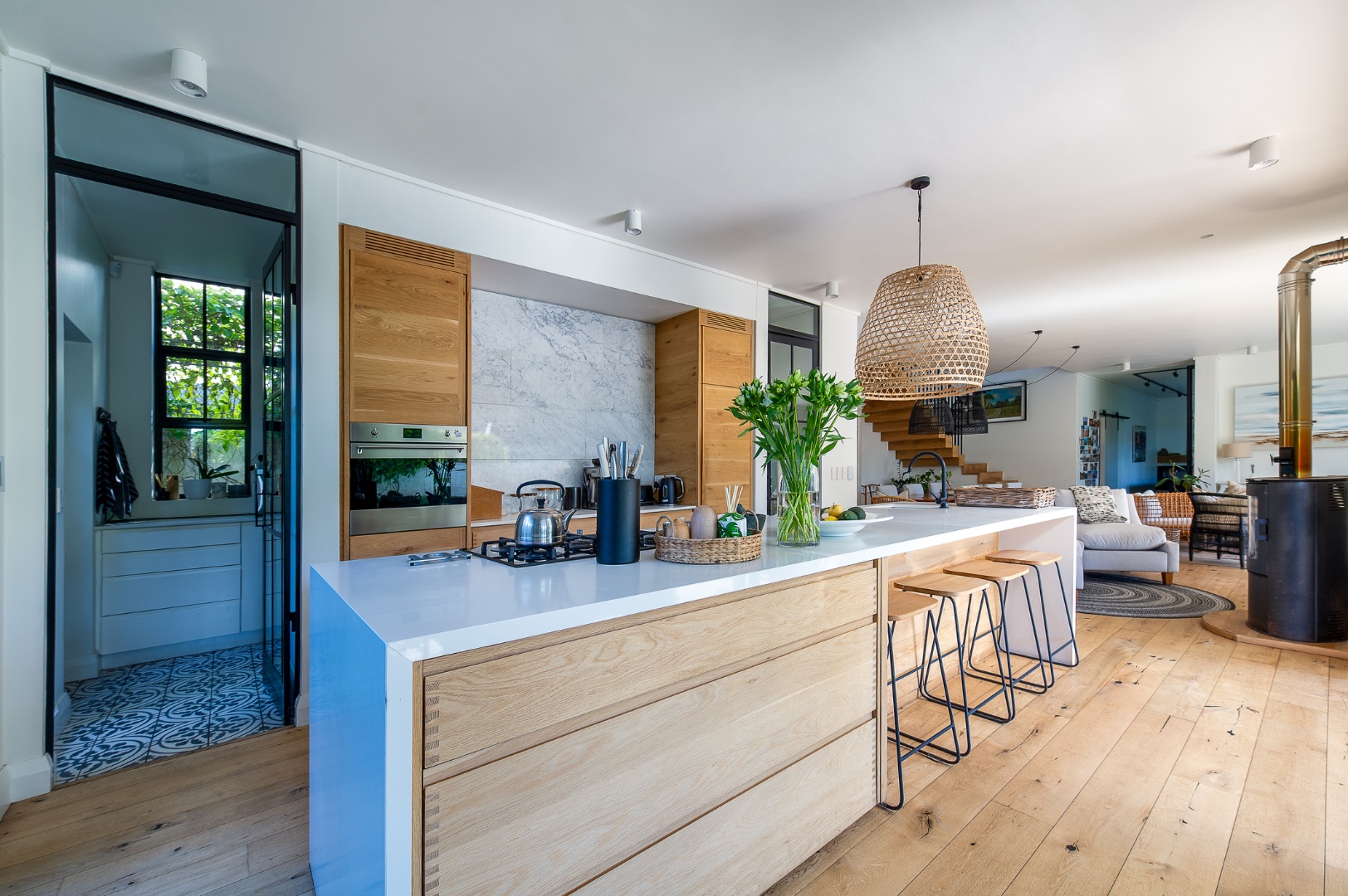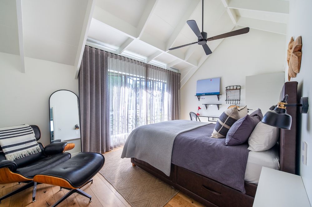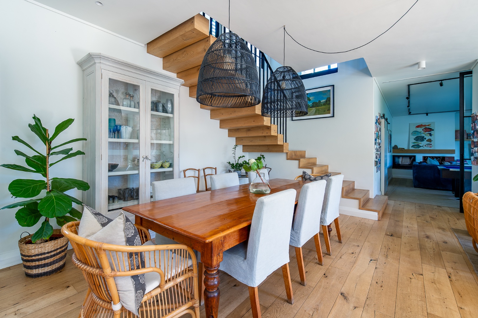 Upstairs, open truss ceilings frame airy rooms and natural light floods in through glass doors and Juliet balconies. 3 spacious en-suite bedrooms and office space on offer. A bonus separate entrance self-contained flatlet adds income potential or as a private guest retreat.
