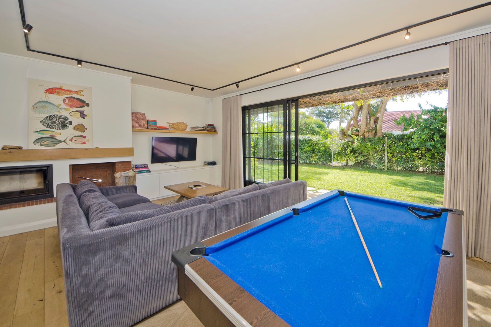 As you enter the home; you are welcomed with wide open-plan living spaces; cavity sliding doors that showcase the sun-drenched north-facing entertainment area and an inviting lap pool. The heart of the home is the solid oak kitchen; elegant and functional. A step away to the covered patio with lounging and dining space whilst the braai master cooks! The TV lounge, complete with a pool table and multi-directional sliding doors, offers a perfect second retreat space.