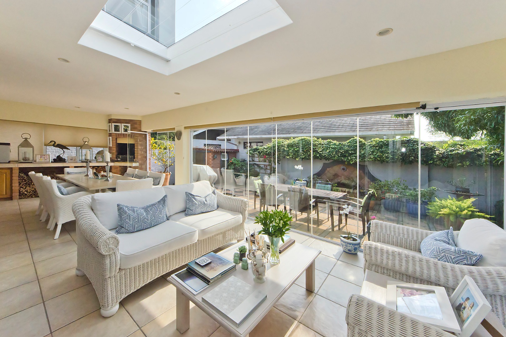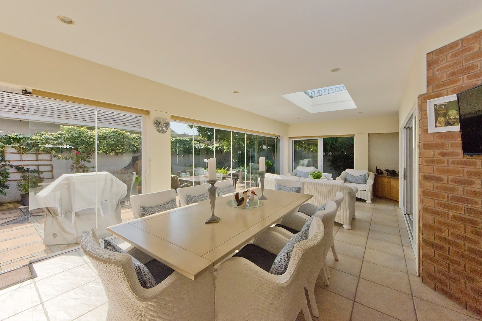 The open-plan kitchen, dining, and lounge flow seamlessly into a sun-bathed north-facing enclosed entertainment space - a special space to enjoy a BBQ with both lounging and dining spaces.