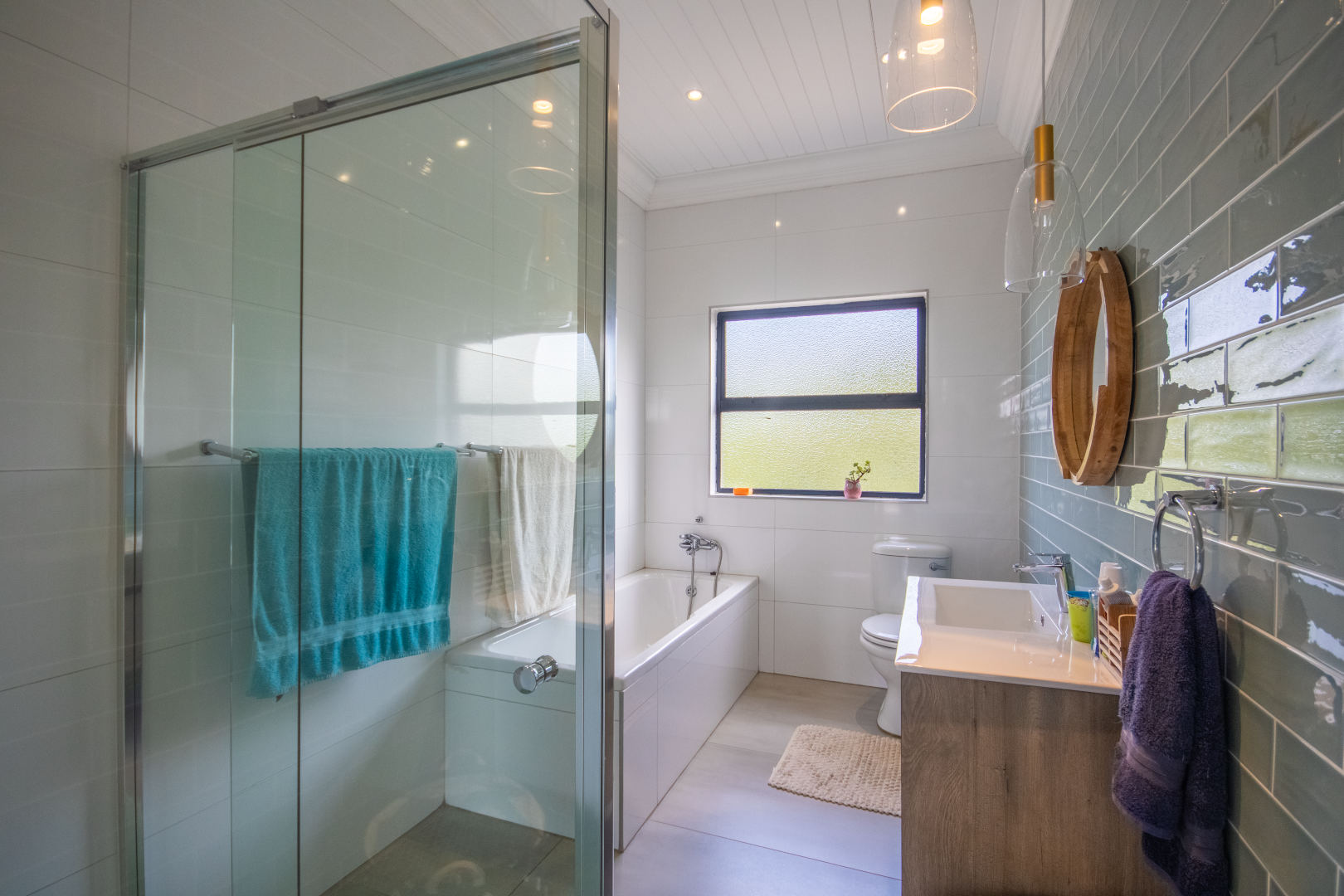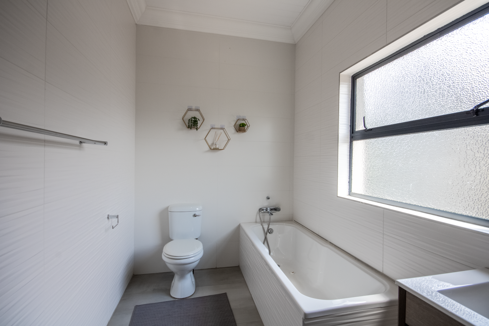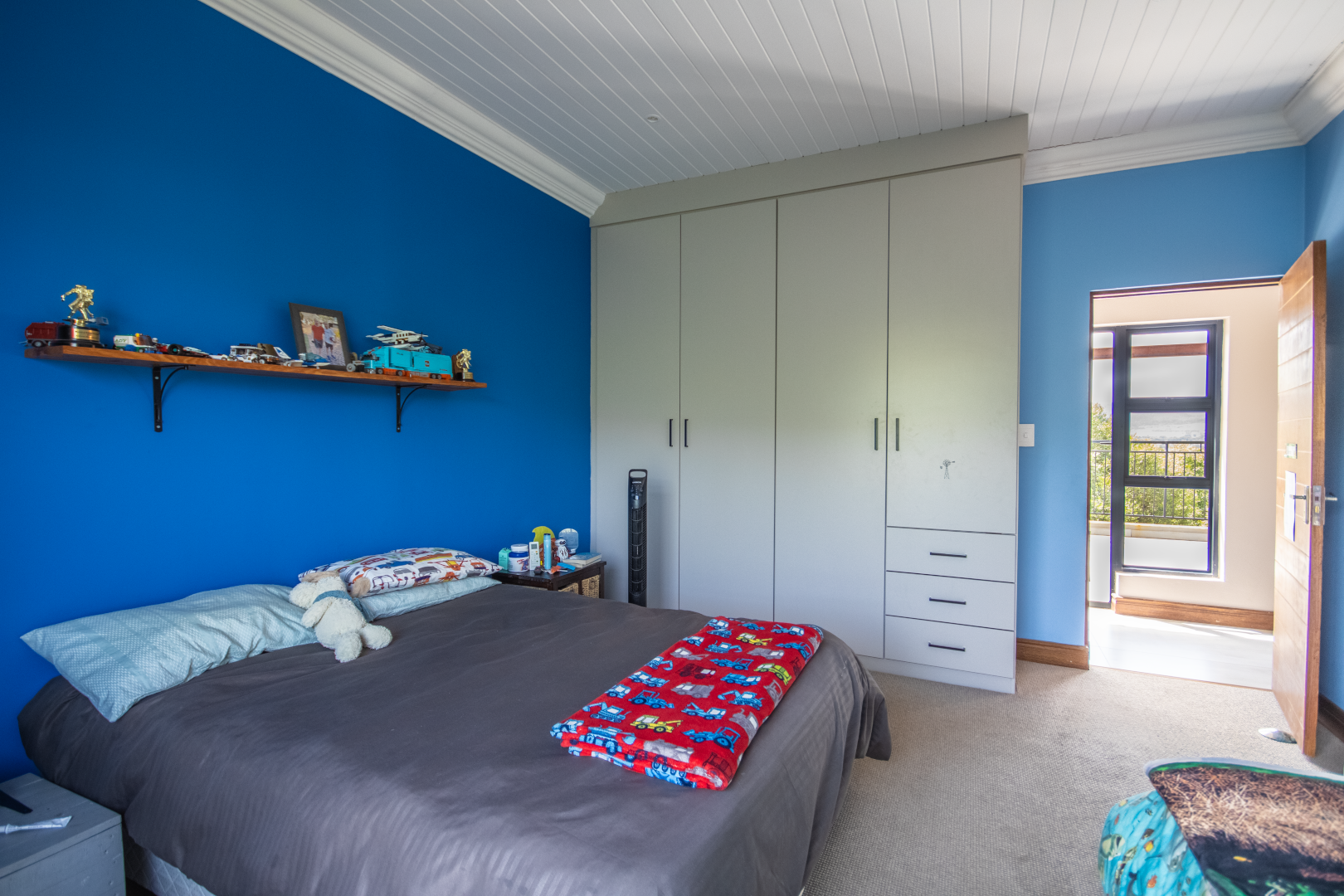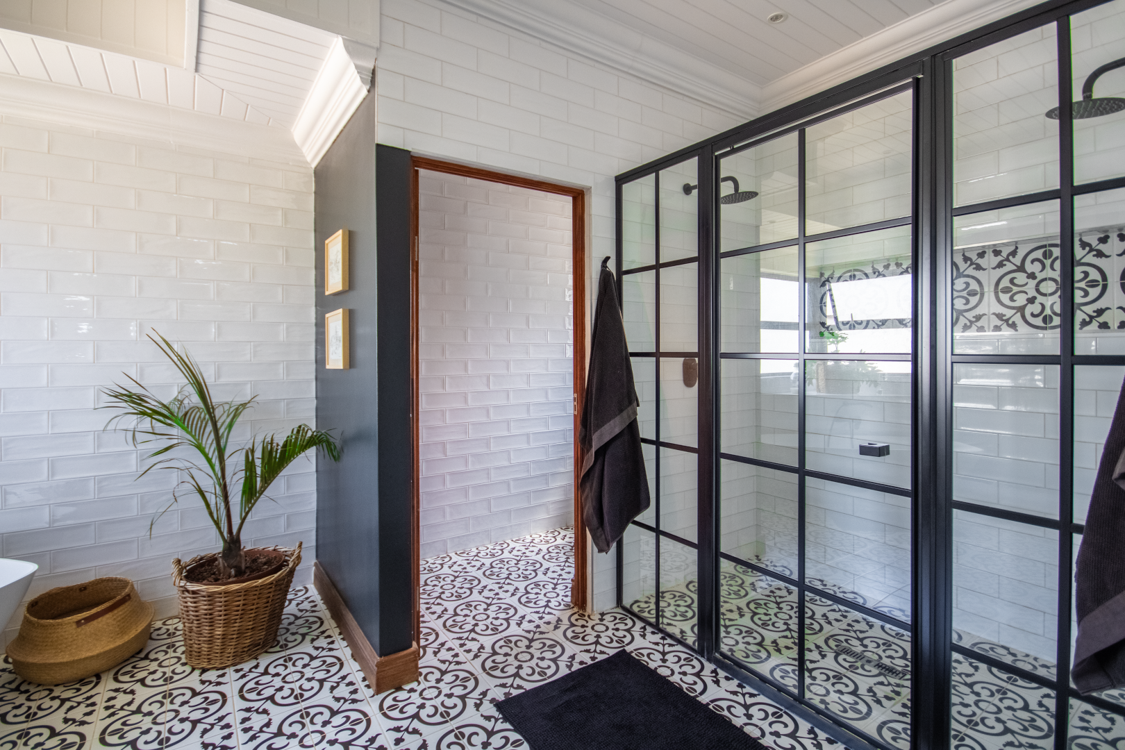 Upstairs, the home continues to impress. To one side, a private bedroom sits quietly in its own wing, ideal for guests or as a secluded hideaway. A pajama lounge at the heart of the upper level offers the family a cozy space to gather and relax. Two generously sized bedrooms share a bathroom and are thoughtfully positioned near a large balcony that boasts breathtaking sunset views over the bushveld. The main bedroom is the ultimate retreat, complete with a luxurious dressing room and a spacious en-suite bathroom where black bohemian tiles create a striking yet inviting atmosphere.