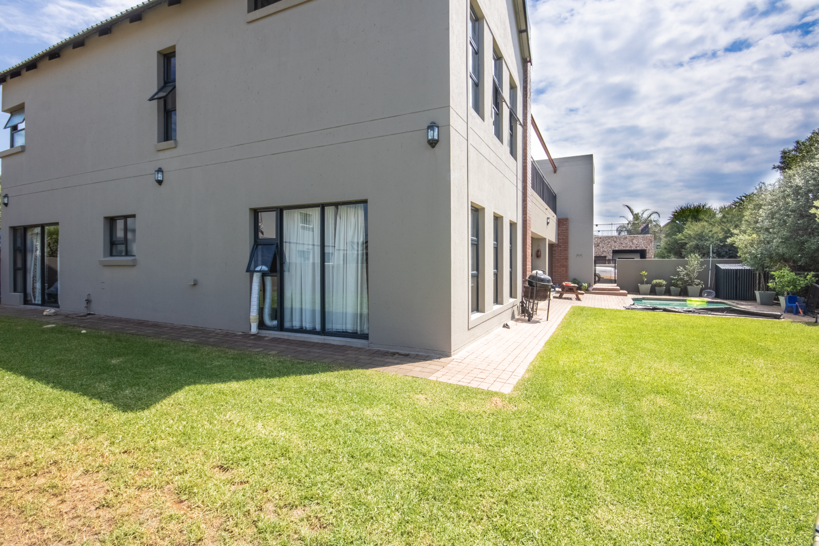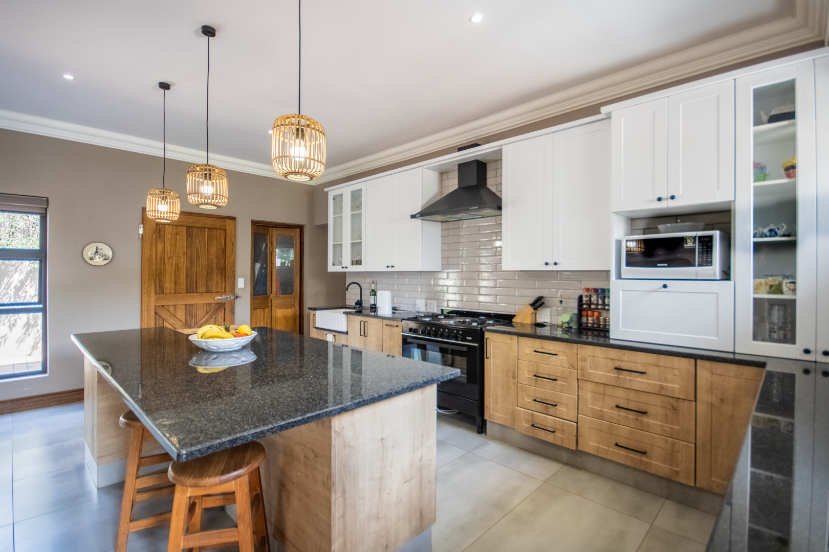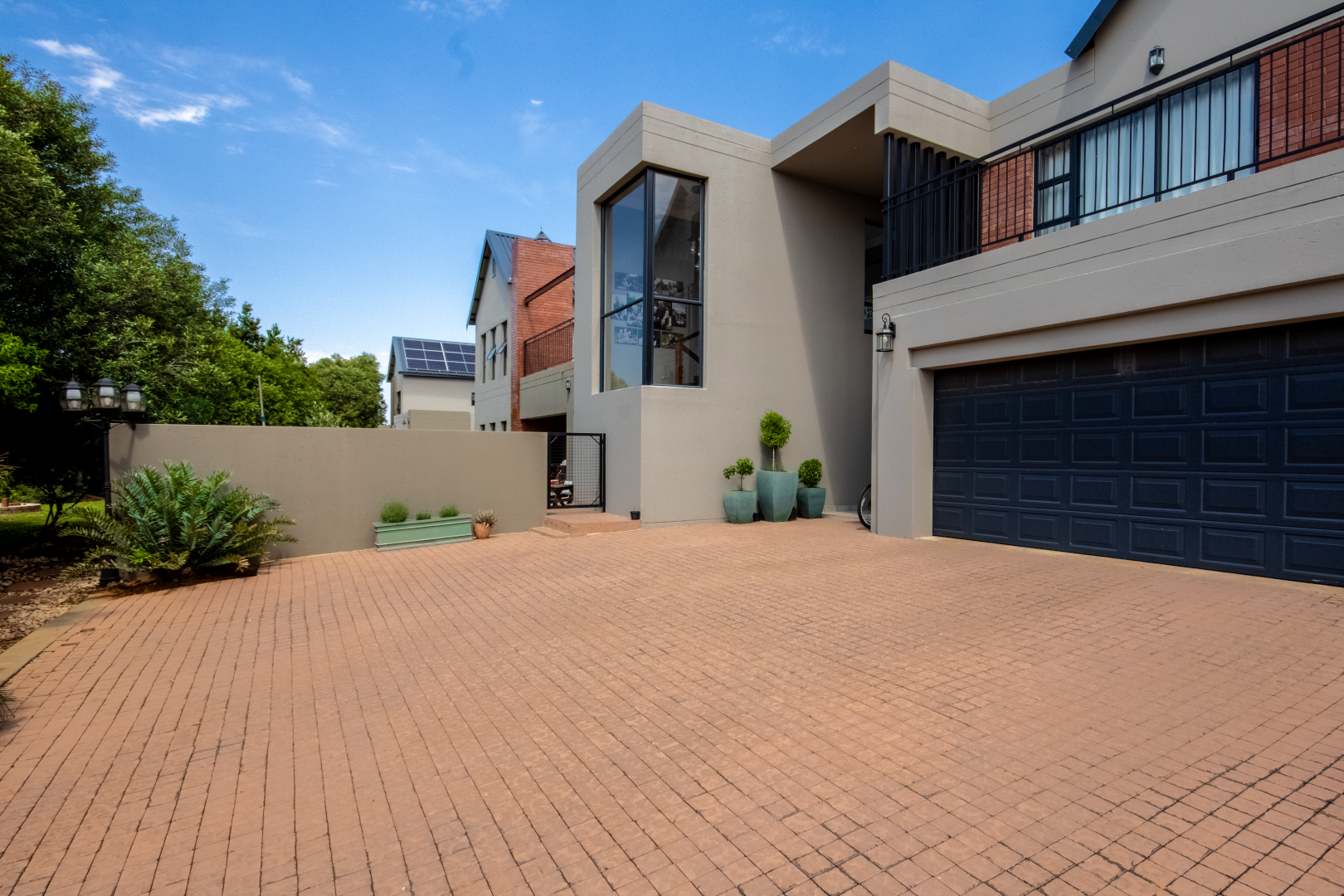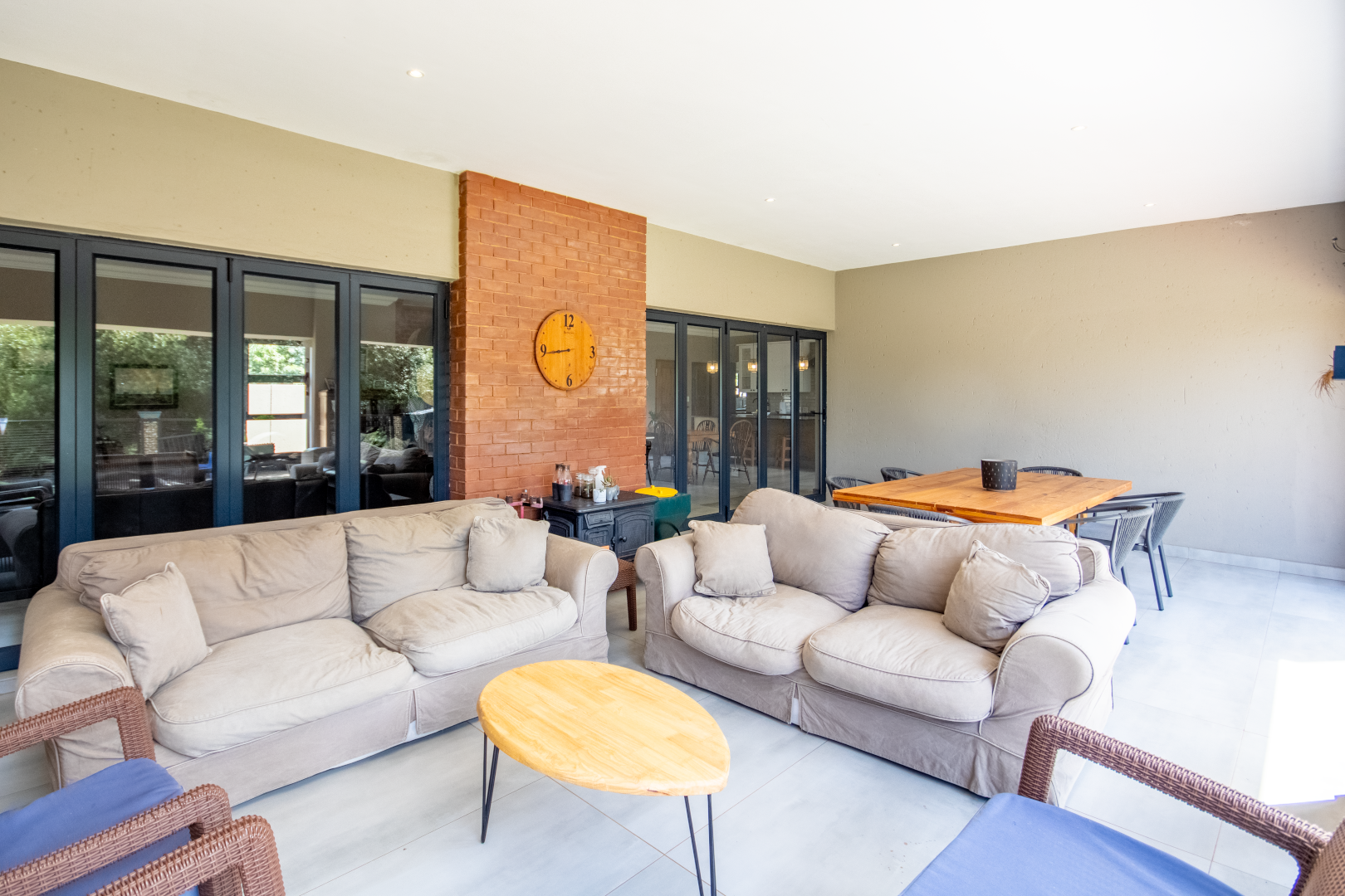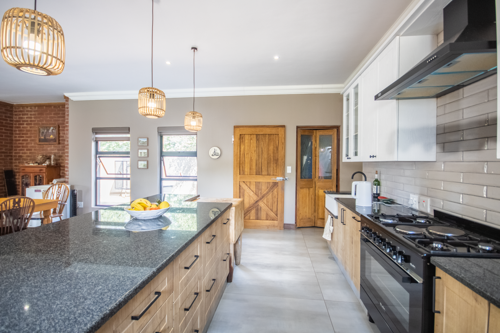 Set high on a hill in the prestigious Leloko Lifestyle Estate, this remarkable 5-bedroom home is a blend of industrial farmhouse charm and modern luxury. Designed with natural exposed brick and large glass elements, the house feels both contemporary and rustic, perfectly complementing its stunning surroundings.