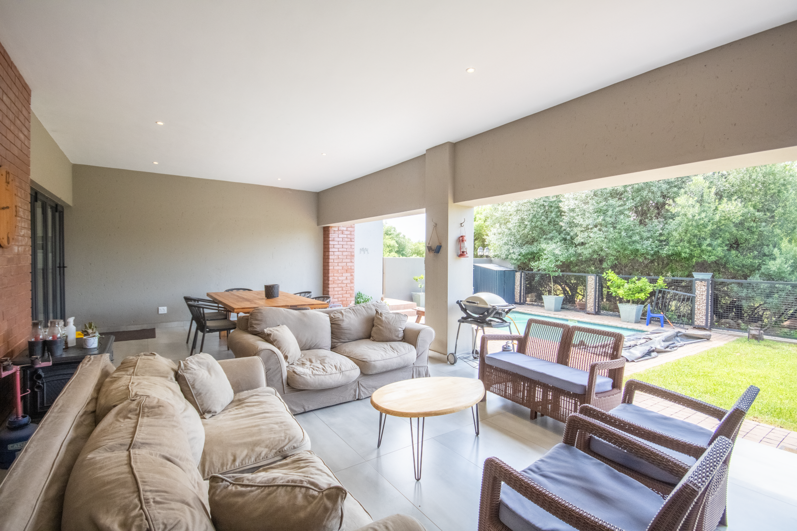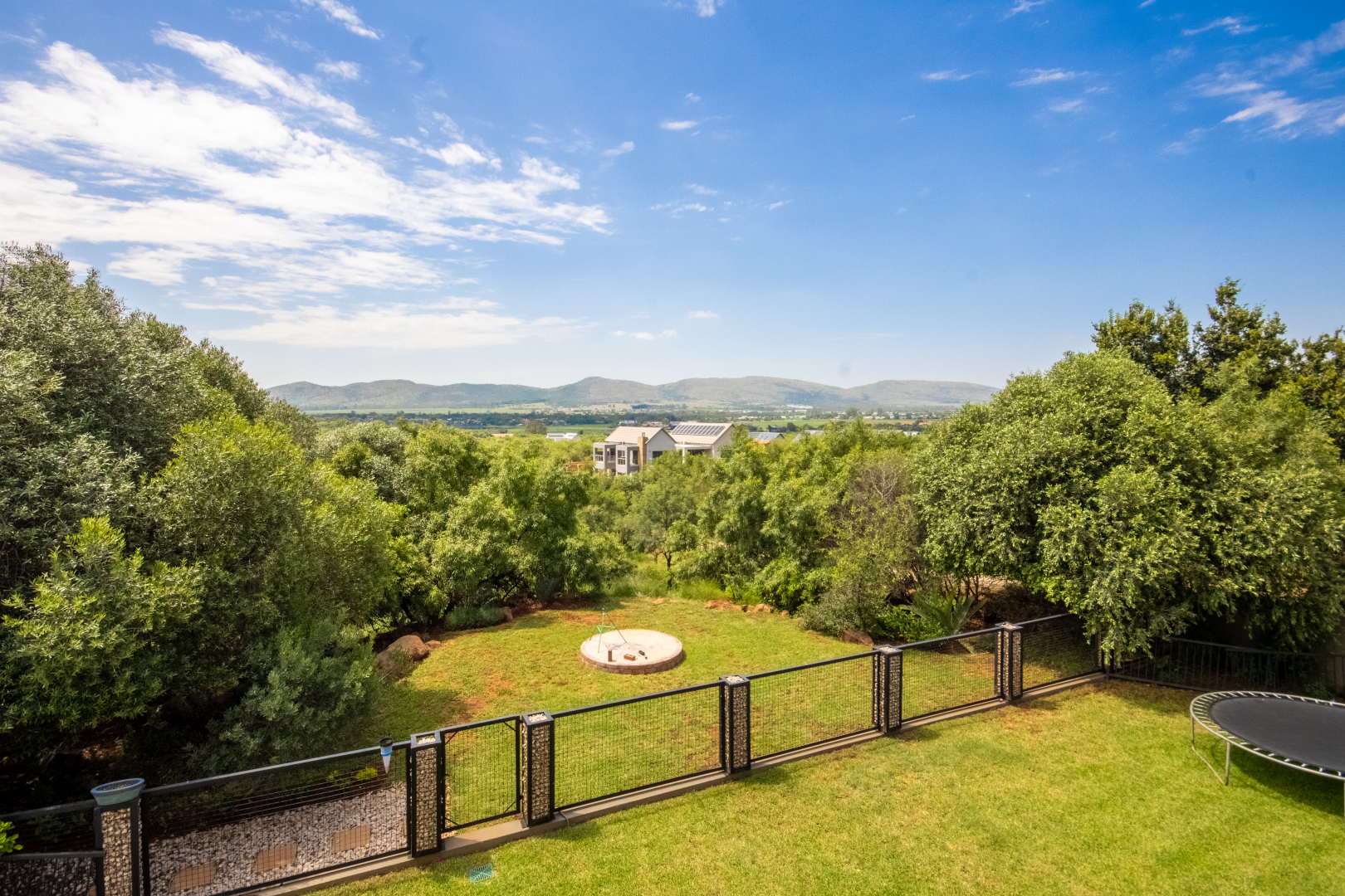 The outdoor spaces truly embrace the bushveld lifestyle Leloko is known for. The sprawling garden seamlessly extends into the estate’s greenbelt, creating a sense of endless space and tranquility. A boma adds a touch of magic, perfect for evenings around the fire under the starlit sky.
