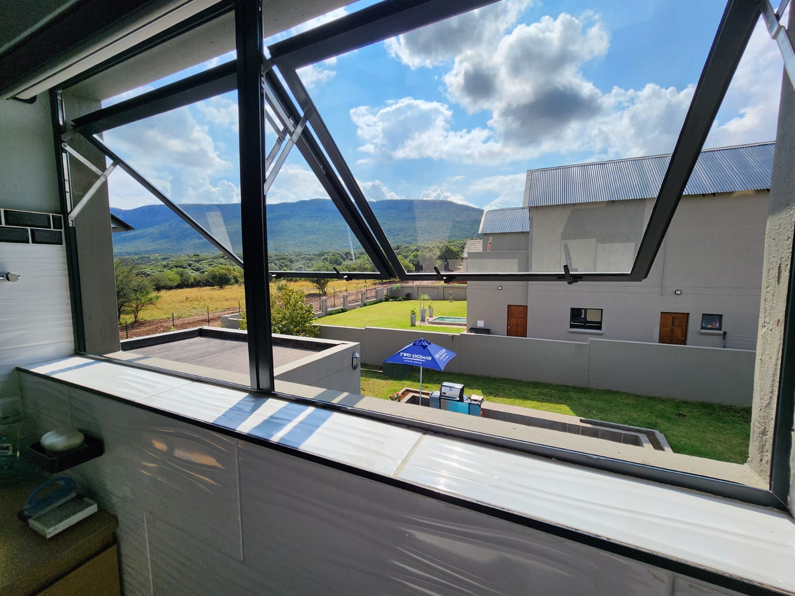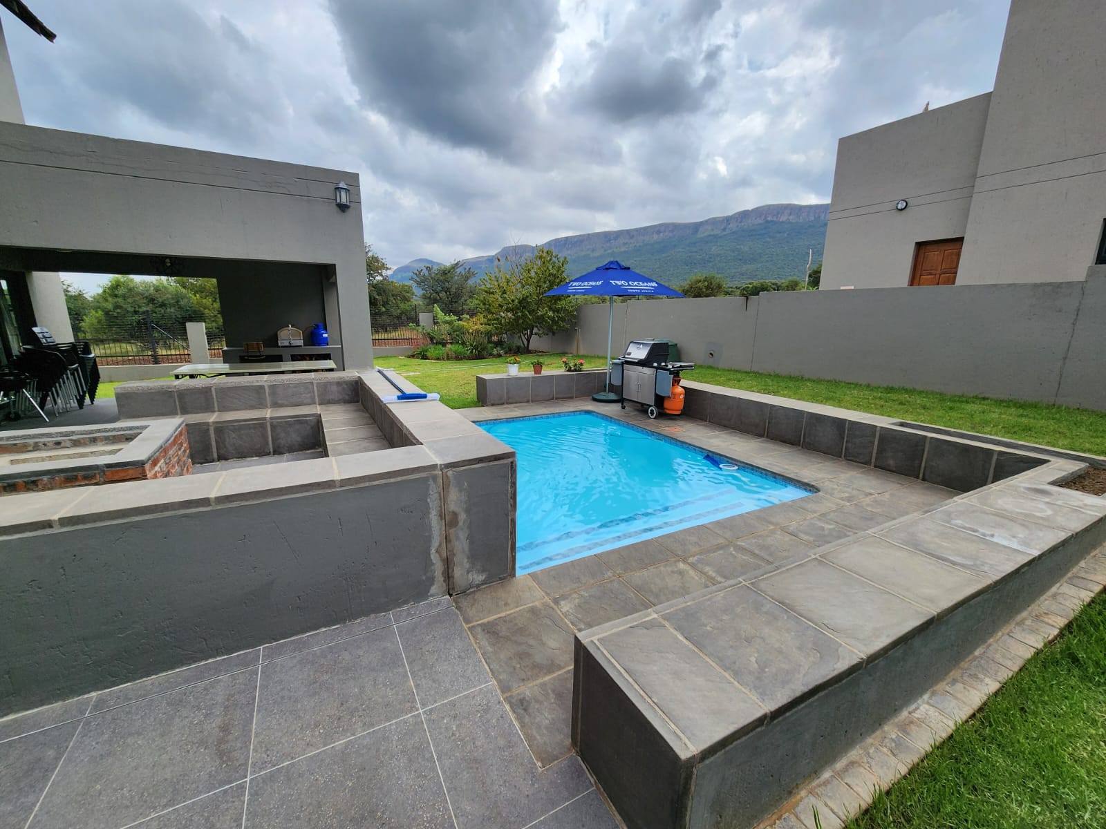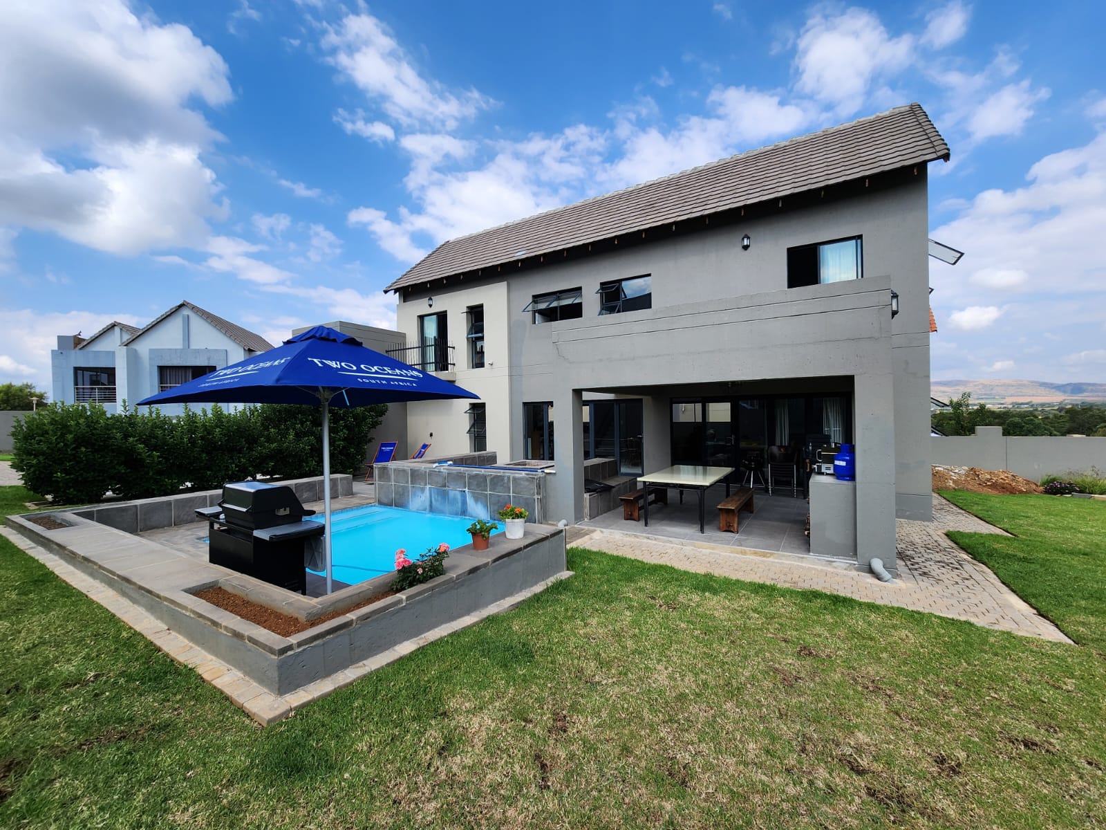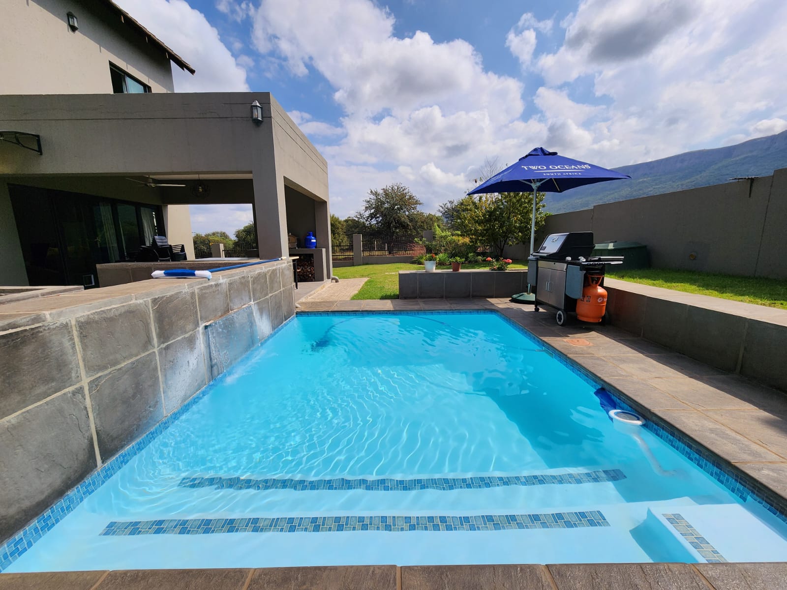 The outdoor fireplace and covered patio making alfresco dining a breeze. Enjoy meals under the stars overlooking the surrounding Magaliesberg Mountain range.