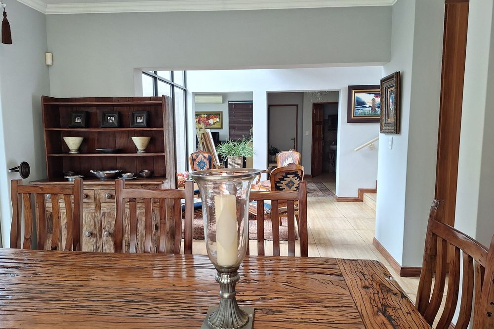 The heart of the home features an open-plan layout that seamlessly connects the kitchen, lounge, and dining area — an ideal setup for both family living and effortless entertaining. Large sliding doors lead you to an enclosed patio with a built-in braai, allowing you to host gatherings all year round.