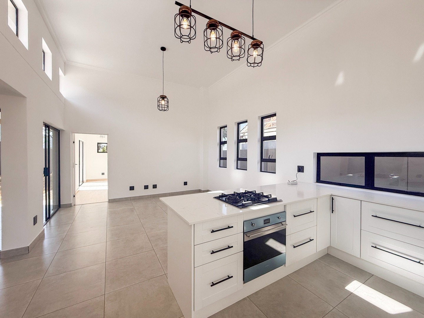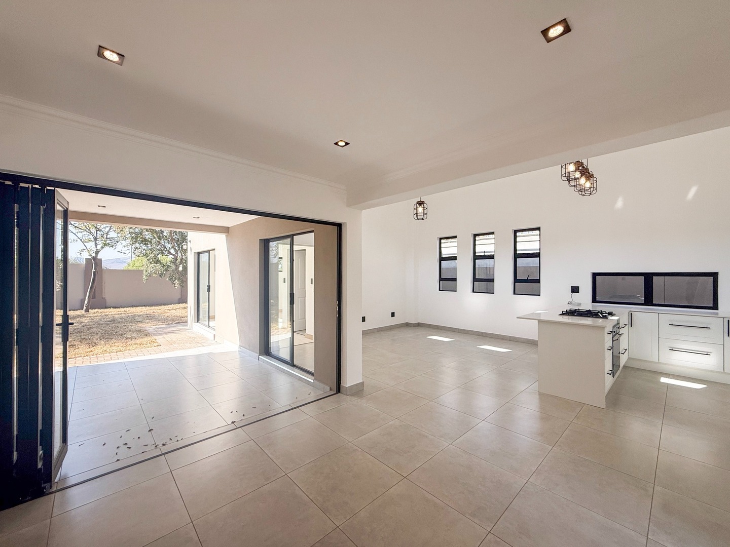 Discover your dream home at Leloko Lifestyle & Eco Estate with the highly anticipated launch of Phase 2 of The Grove. These stunning, single-level townhouses are designed for first-time buyers and discerning homeowners alike, offering modern living in a serene, nature-filled environment. Step inside to experience an open and airy layout with exposed trusses that enhance the sense of space and light. The seamless flow between the kitchen, dining, and living areas makes for effortless living and entertaining. The contemporary kitchen features ample storage, high-end finishes, and a separate scullery for added convenience. Each home boasts three generously sized bedrooms and two elegant bathrooms with sleek black-and-white finishes. The main bedroom includes an en-suite bathroom, offering a private retreat for relaxation.