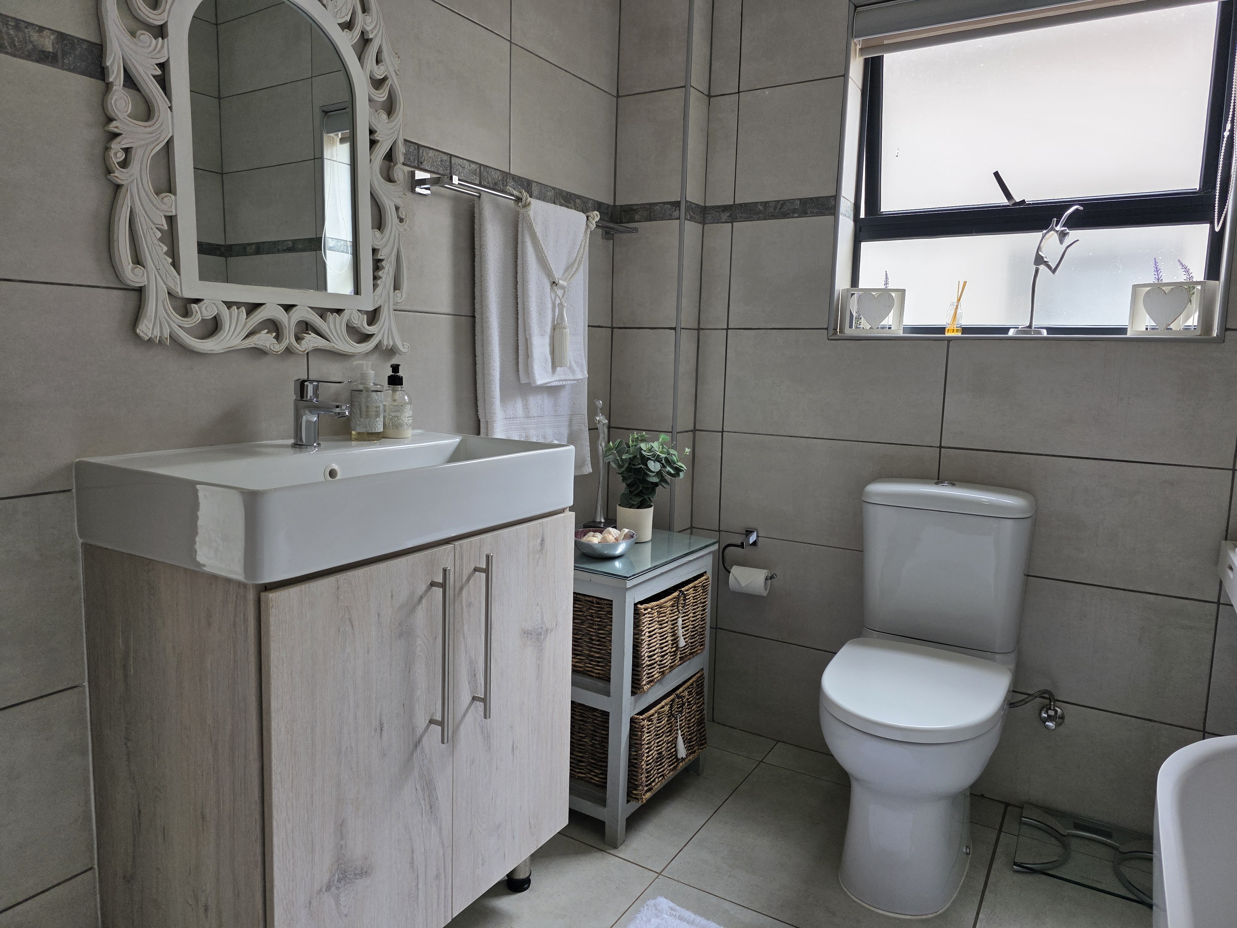 The main bedroom is a private retreat featuring its own stylish en-suite bathroom, while the second bedroom is conveniently located next to a separate toilet—ideal for guests or family living.