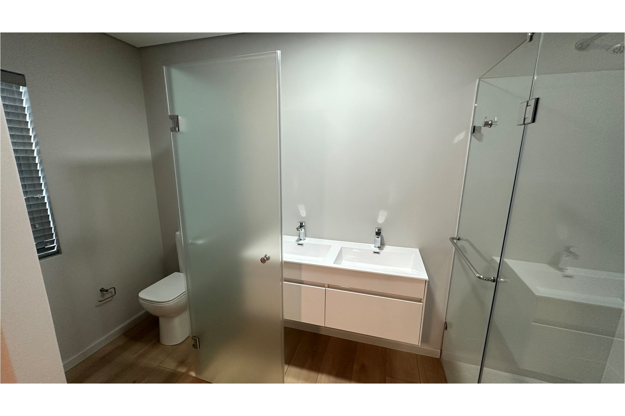 Designed for modern family living, the home offers 144m2 of beautifully finished space with clean lines, high-end fittings, and thoughtful design throughout. The main bedroom features a sleek en-suite with double vanity and a spacious walk-in shower, while the shared bathroom includes a bath, shower, toilet, and basin.