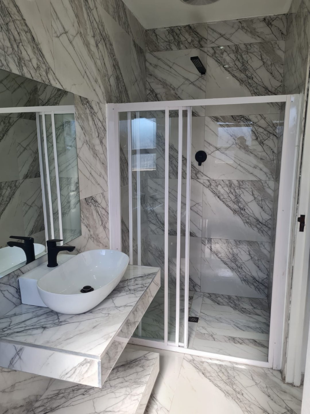 The area is the best currently in Lenasia and in a very well established and cultured area. From the stunning entrance with ease of access and motorized garage to a very clen and neat easily accessed driveway which allows for ample ease when parking.