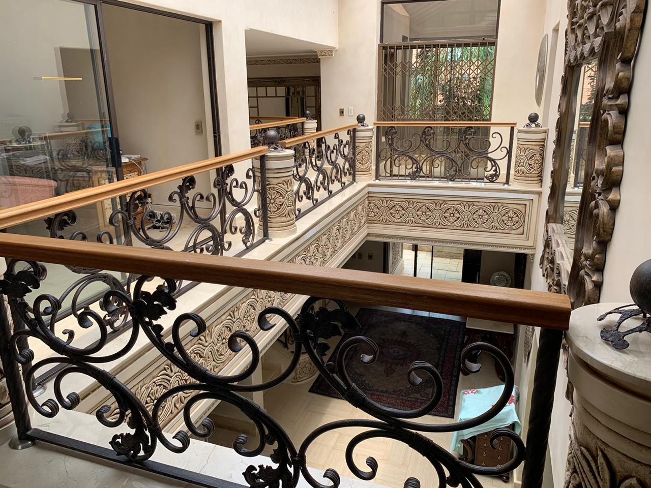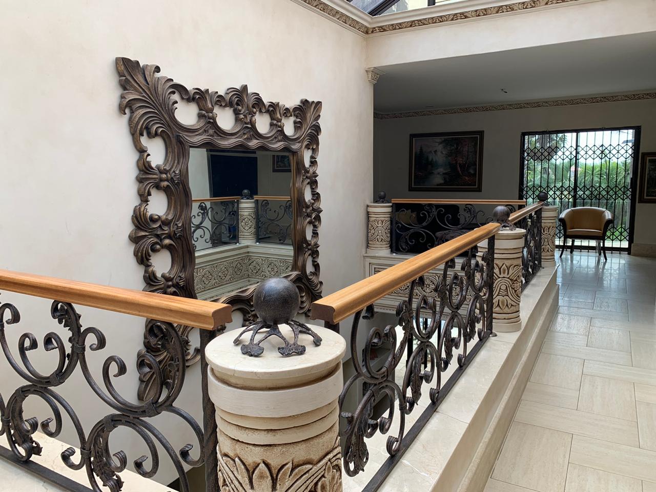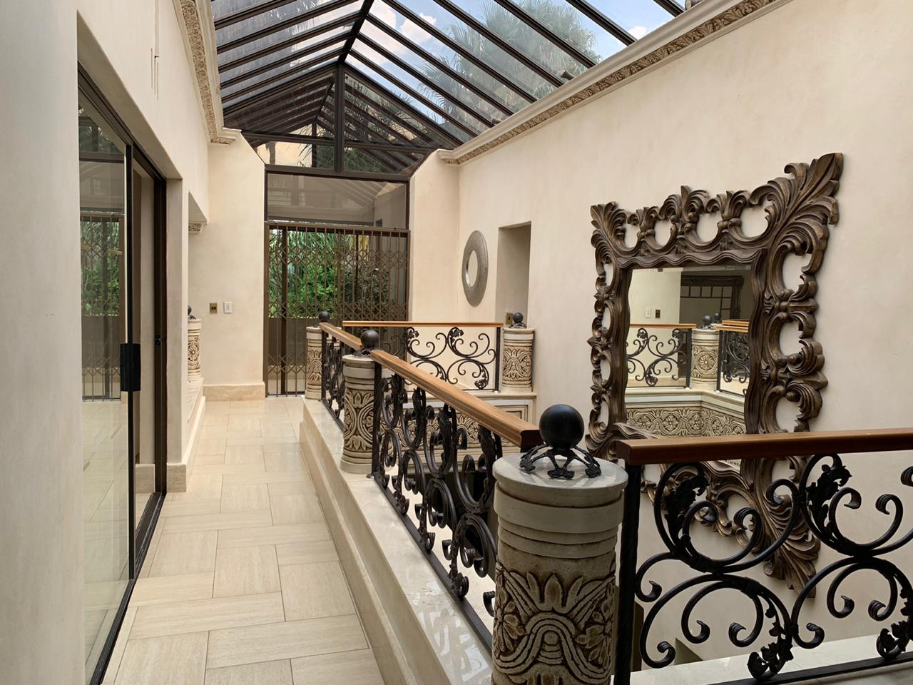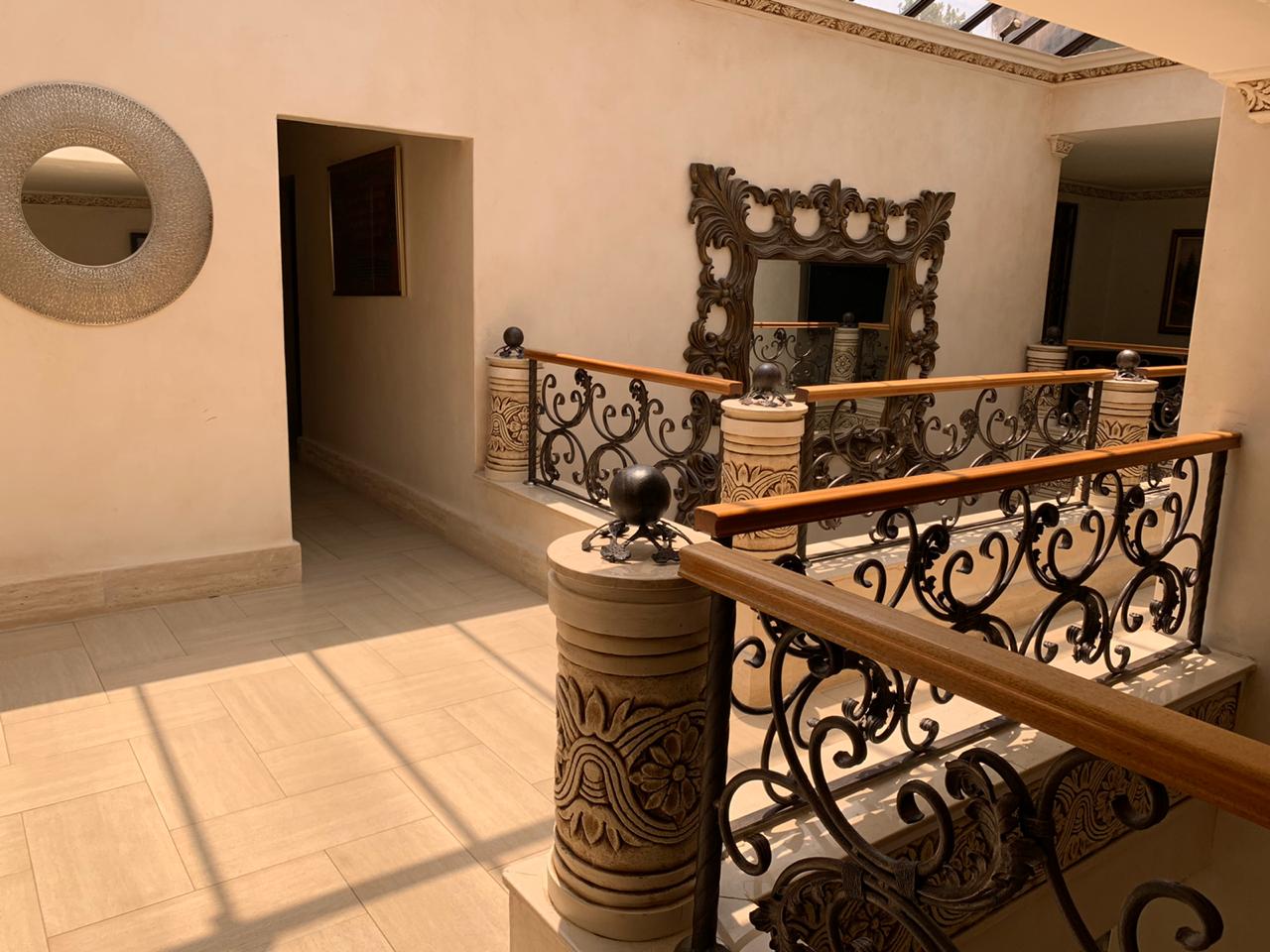 Upstairs, accommodation consists of 5 bedrooms with vast balconies, overlooking the garden. The palatial main bedroom incorporates a large dressing room and a bathroom to behold.