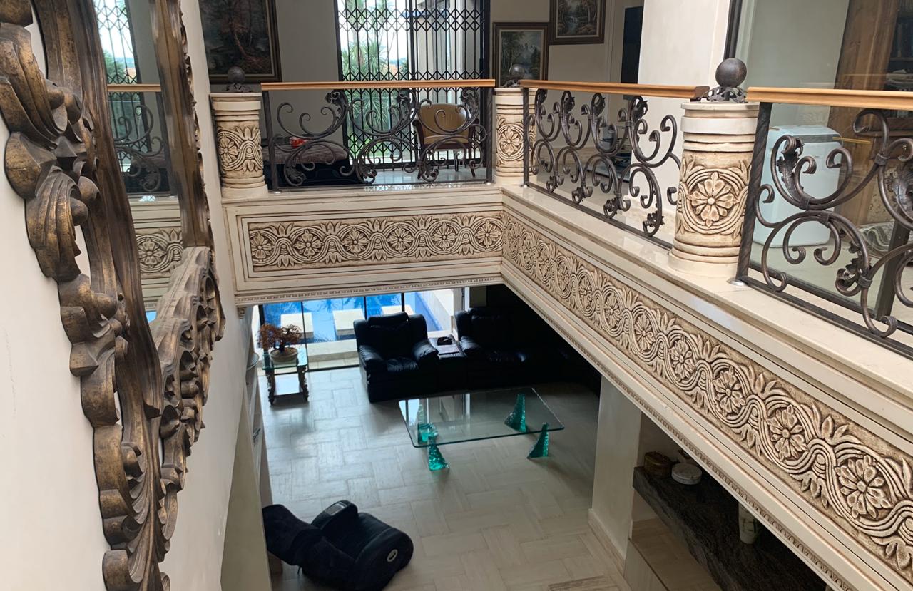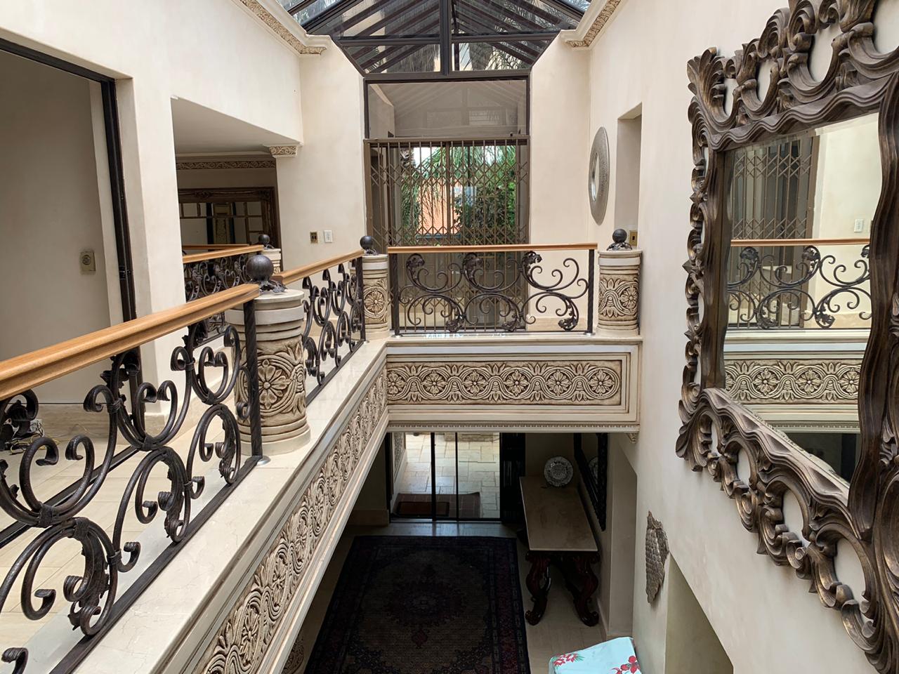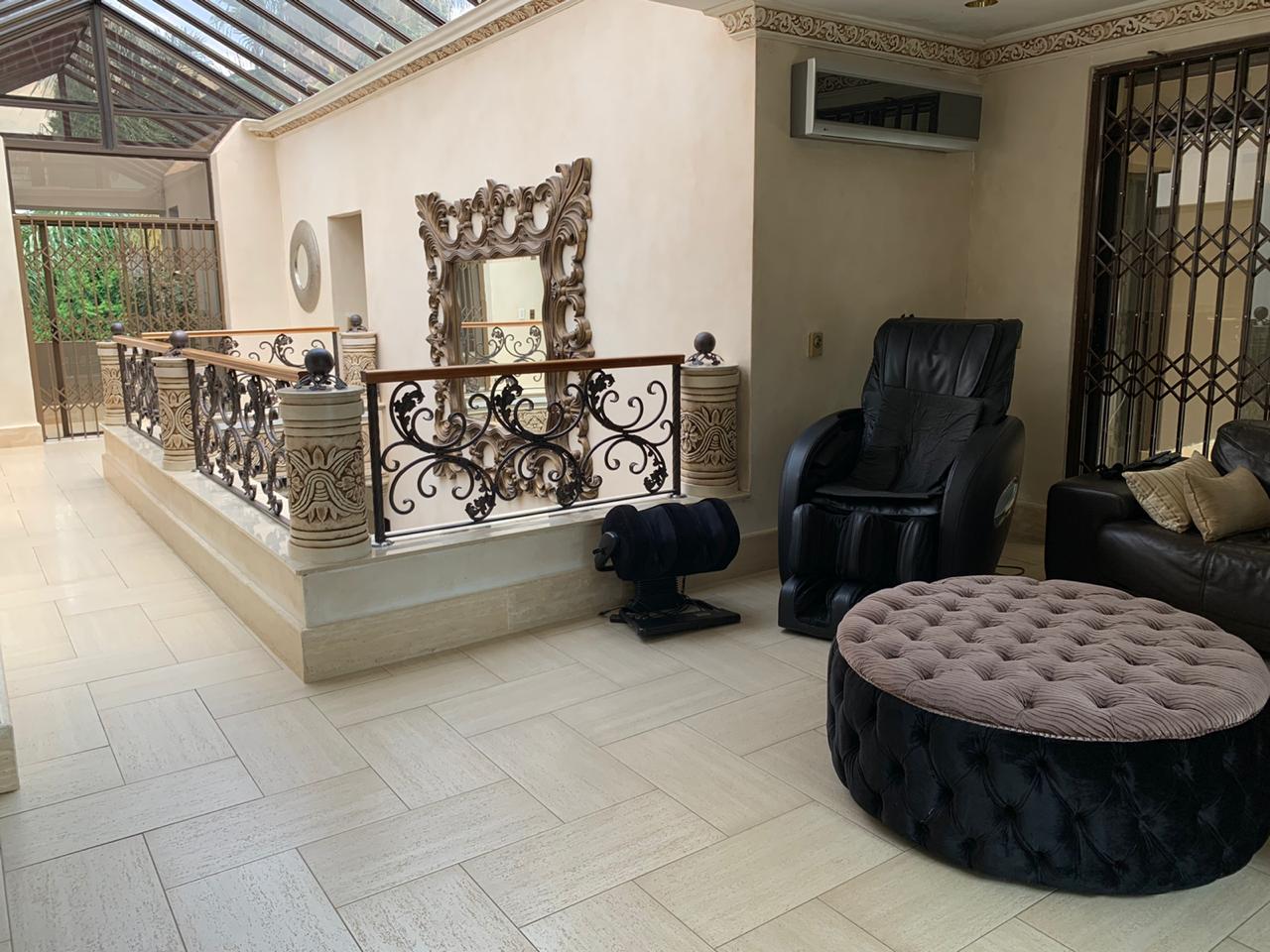 Upstairs, accommodation consists of 5 bedrooms with vast balconies, overlooking the garden. The palatial main bedroom incorporates a large dressing room and a bathroom to behold.