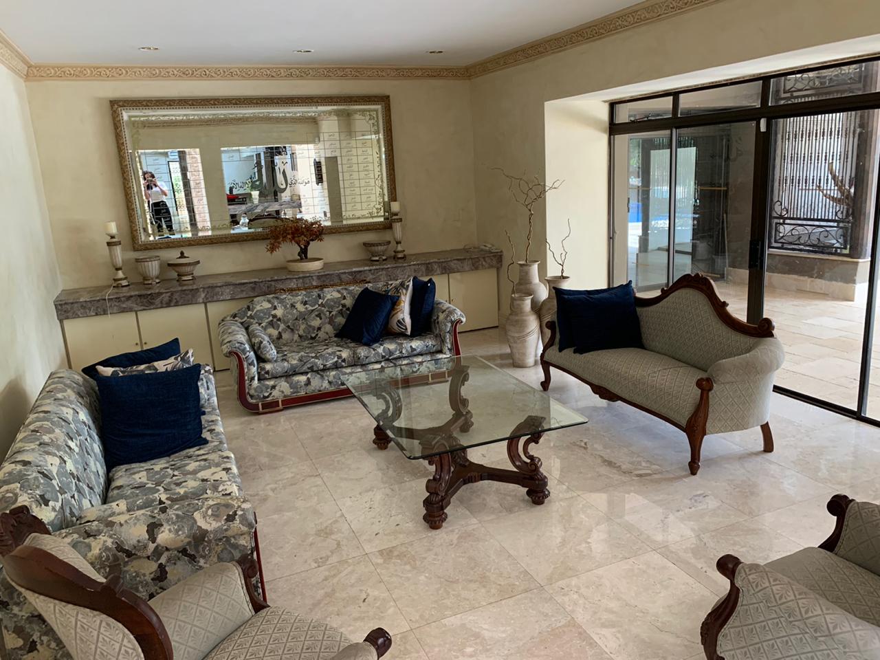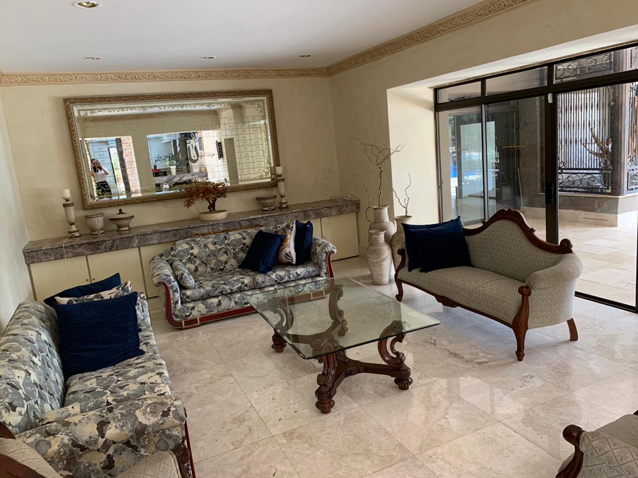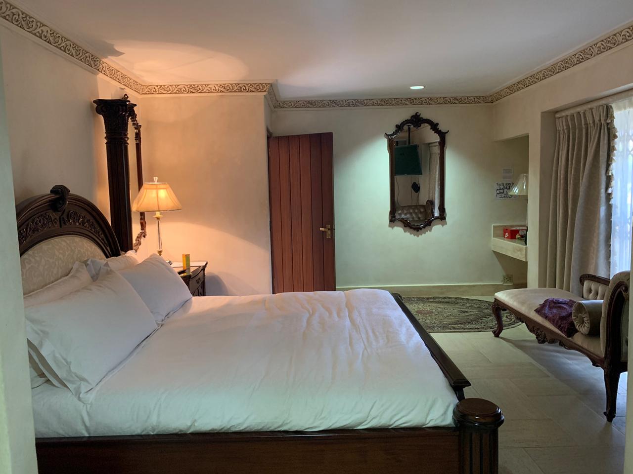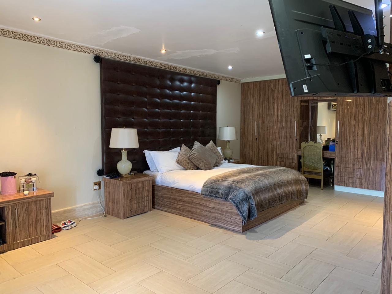 Upstairs, accommodation consists of 5 bedrooms with vast balconies, overlooking the garden. The palatial main bedroom incorporates a large dressing room and a bathroom to behold.
