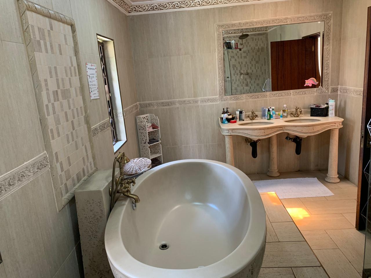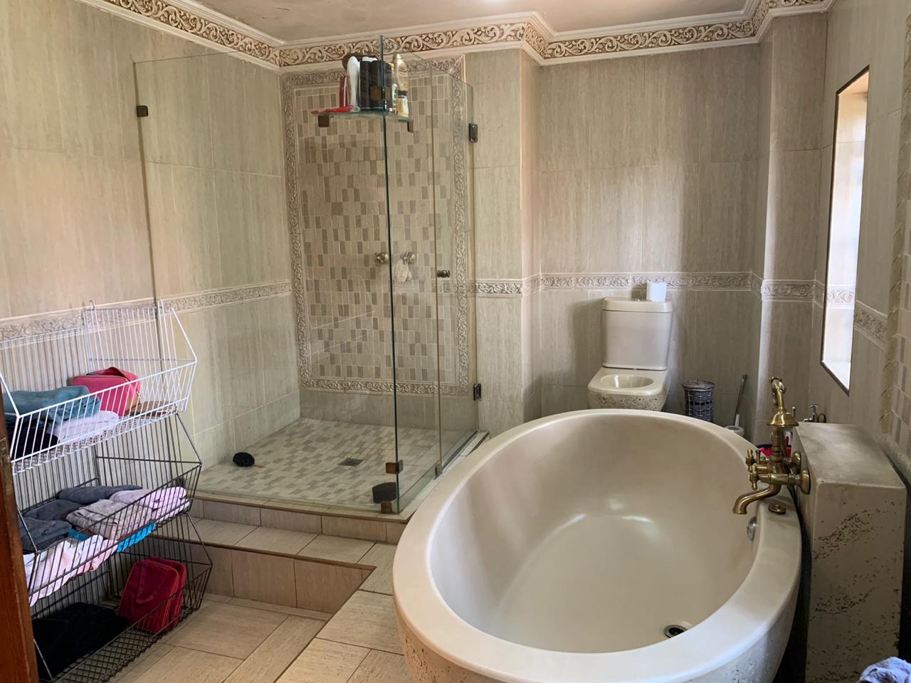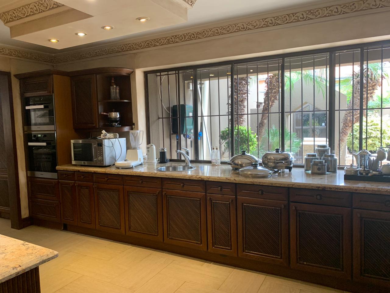This superb property lends itself to grand scale entertainment, both indoors and outdoors, which include a heated pool, sauna, Jacuzzi, full guest bathroom and covered built-in braai area.