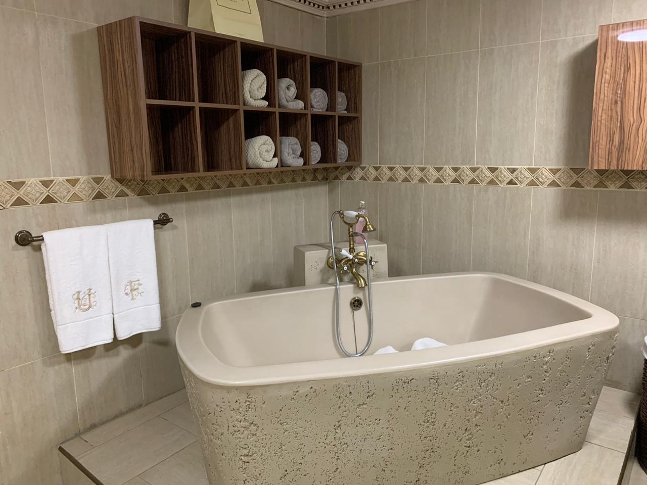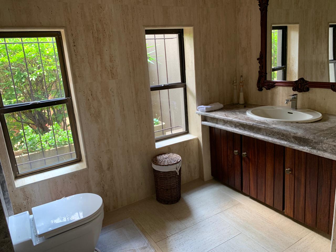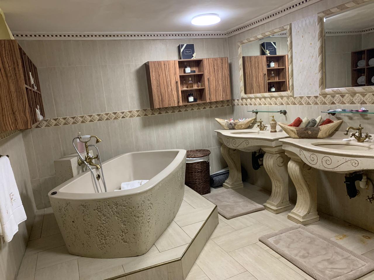 This superb property lends itself to grand scale entertainment, both indoors and outdoors, which include a heated pool, sauna, Jacuzzi, full guest bathroom and covered built-in braai area.