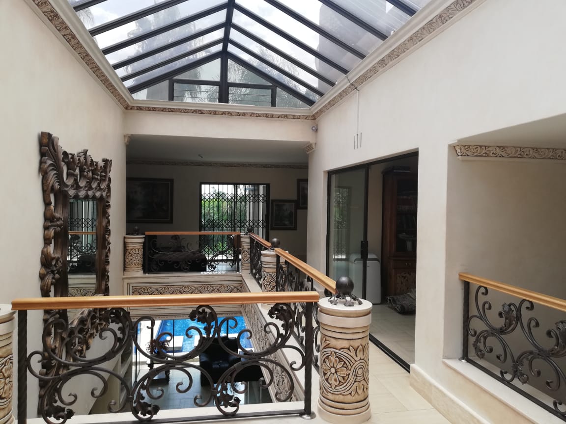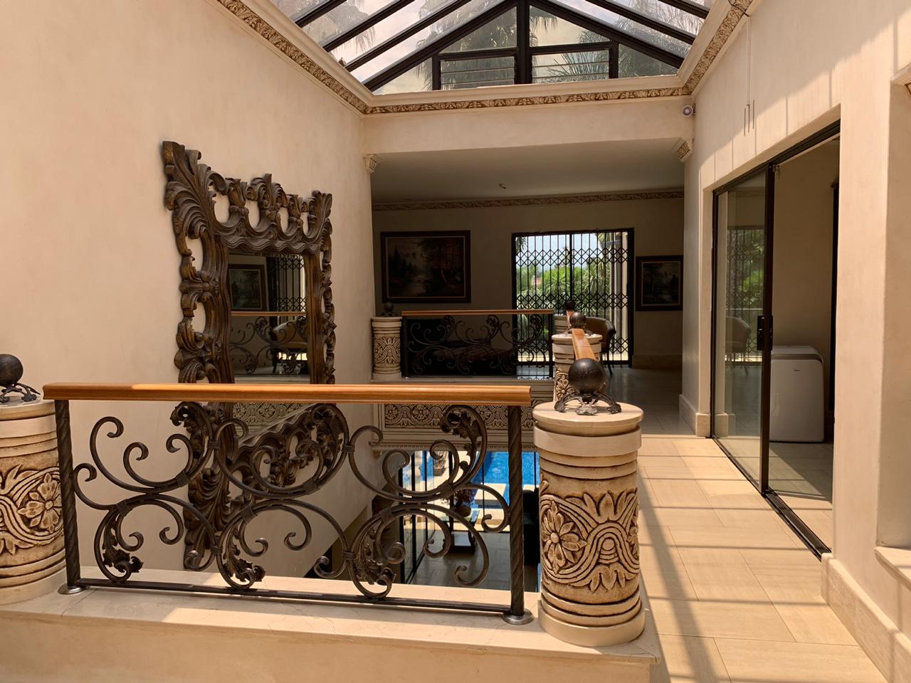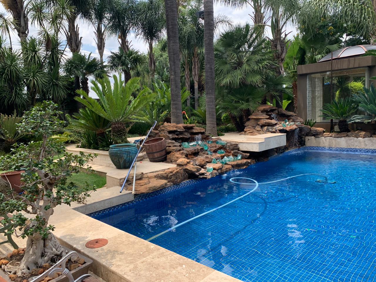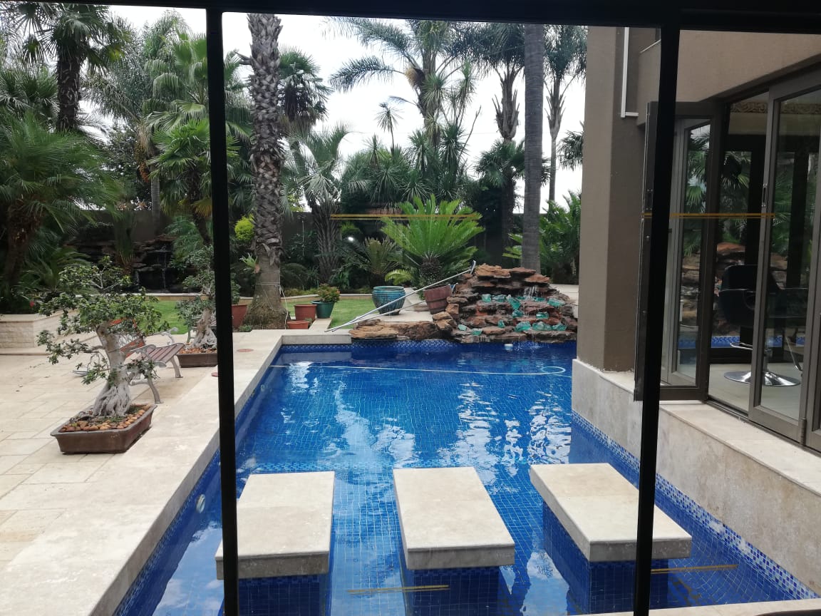 Sleek and timeless in design, this home has it all. The double-volume entrance leads into spacious reception rooms, which open into a magnificent, well established tropical garden boasting water features, tall palm trees, cycad's and a koi pond.