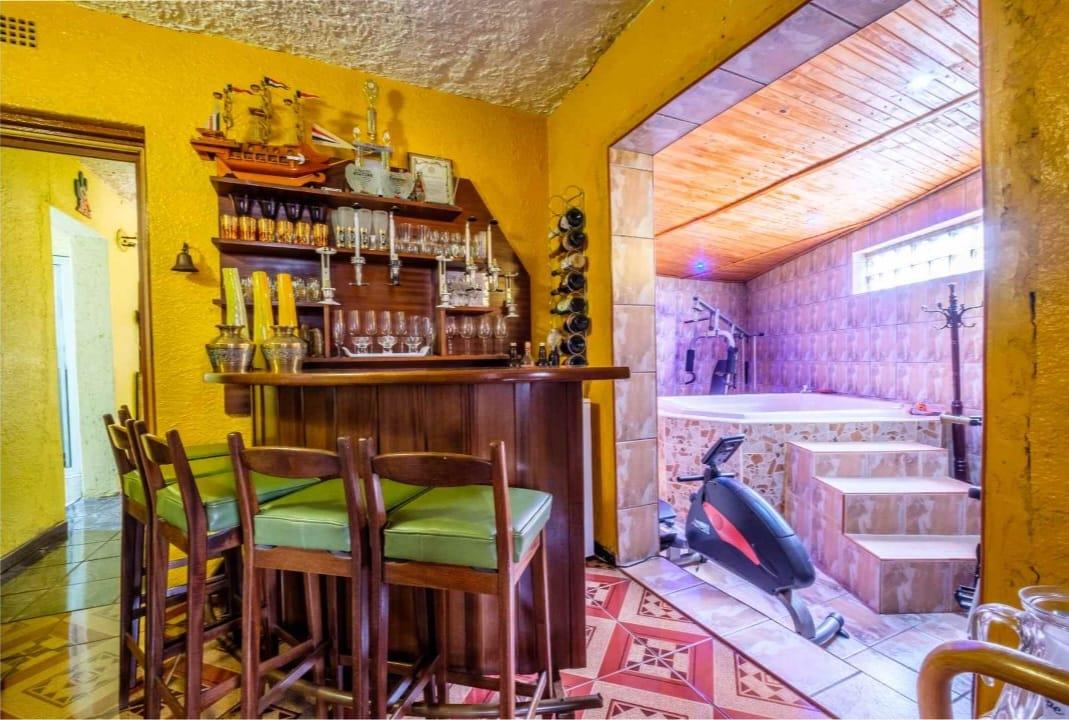 Entertainment and leisure are at the heart of this property, featuring a jacuzzi and a bar area designed for hosting friends and creating lasting memories. The expansive garage provides space for up to three vehicles, complemented by additional parking for four more cars, ensuring convenience and ease for you and your guests.