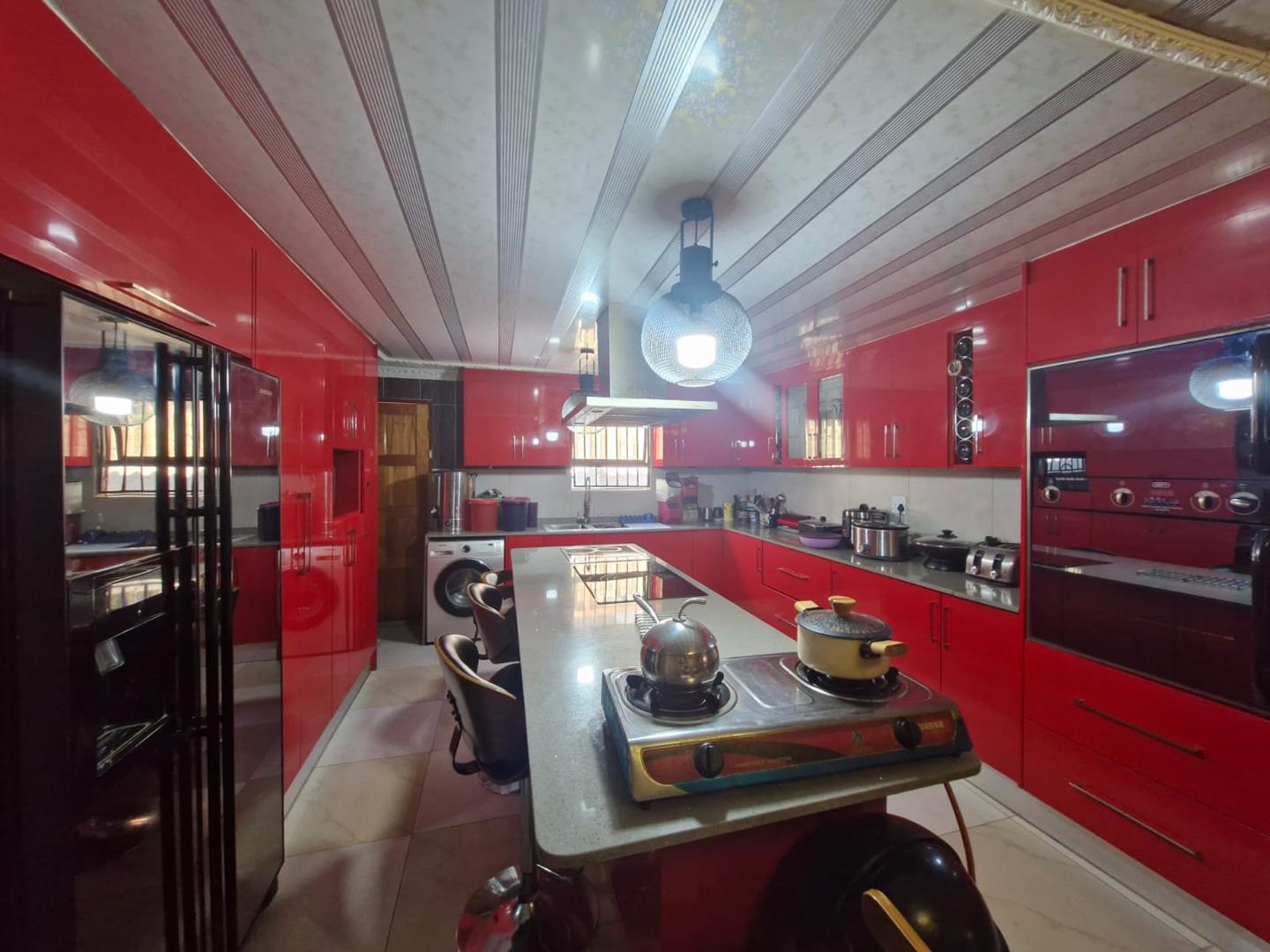 The heart of the home is its bold, designer kitchen in striking red, beautifully fitted and flowing seamlessly into an open-plan lounge — perfect for both family living and entertaining. A formal reception area and additional sitting room add versatility and elegance to the space.