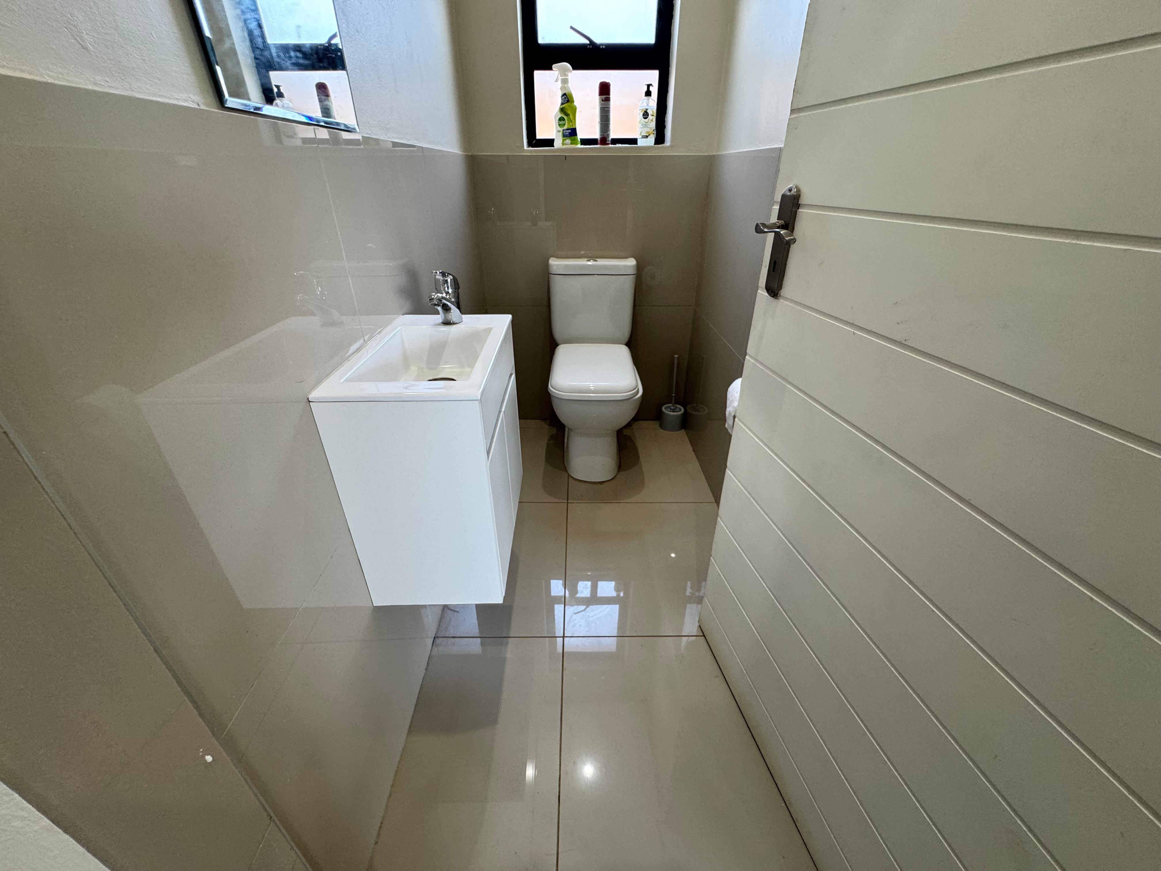 A guest toilet can be found downstairs.
