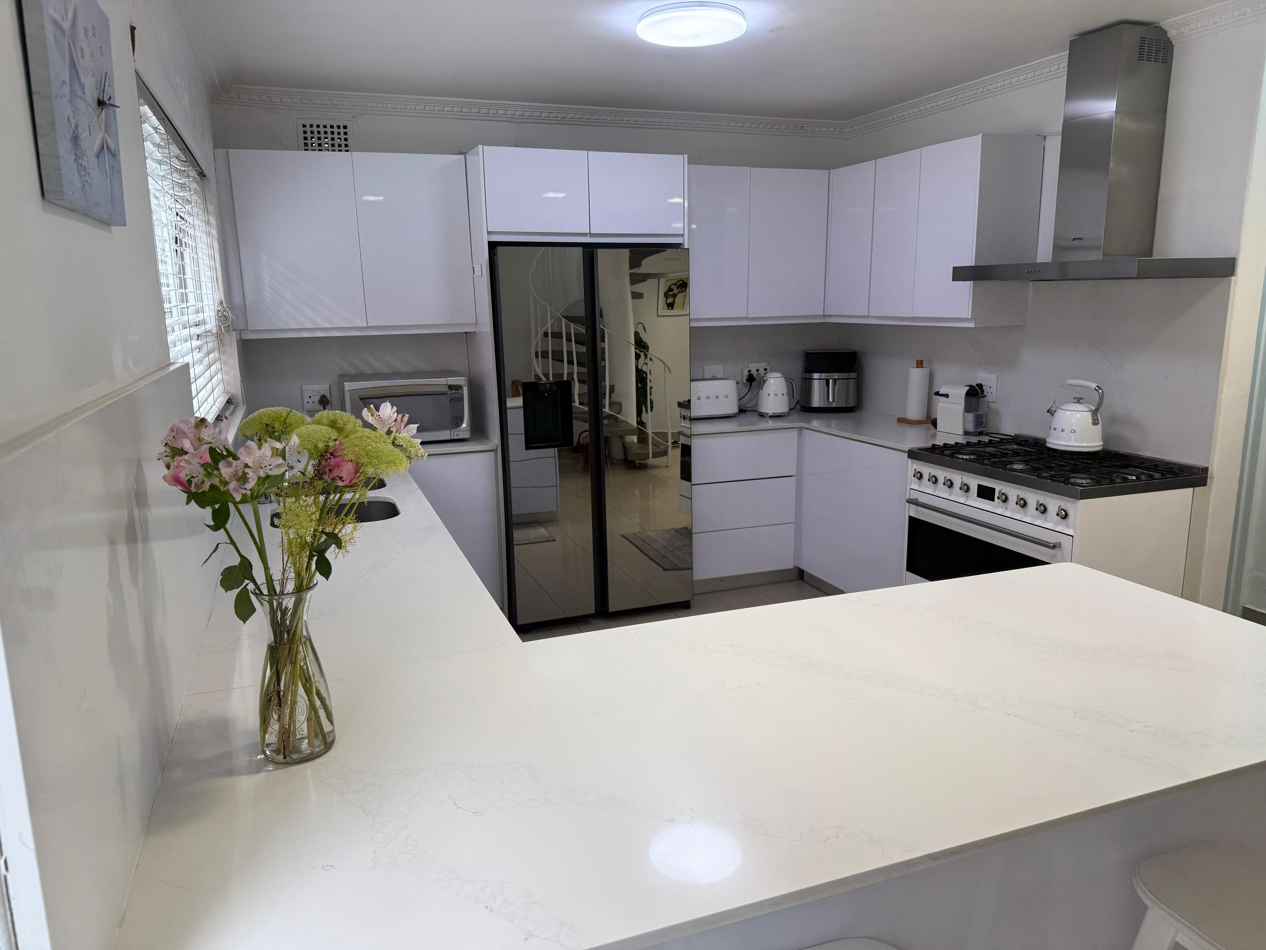 With an open-plan kitchen, living, and dining area, stacker doors leading to a private garden, and a dedicated braai area, it's perfect for both family living and entertaining. The quiet and tranquil neighbourhood is near major shopping centres, schools, and highways, making this a prime location.