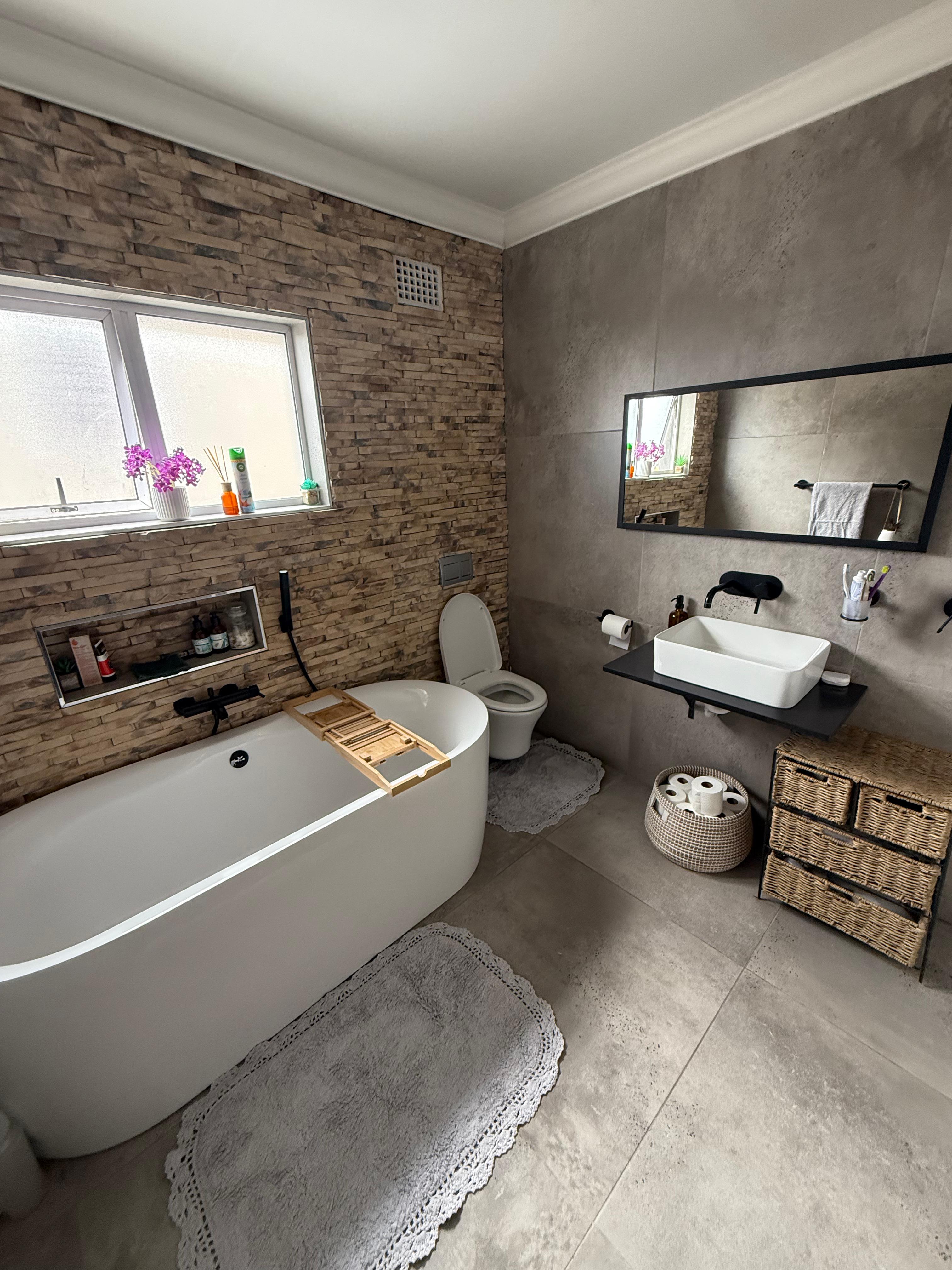 Discover this stunning house to rent in Mitchells Plain's Lentegeur, located at Leander Street. This modern freestanding house is a double-storey home featuring four bedrooms, three bathrooms, and parking for two vehicles.