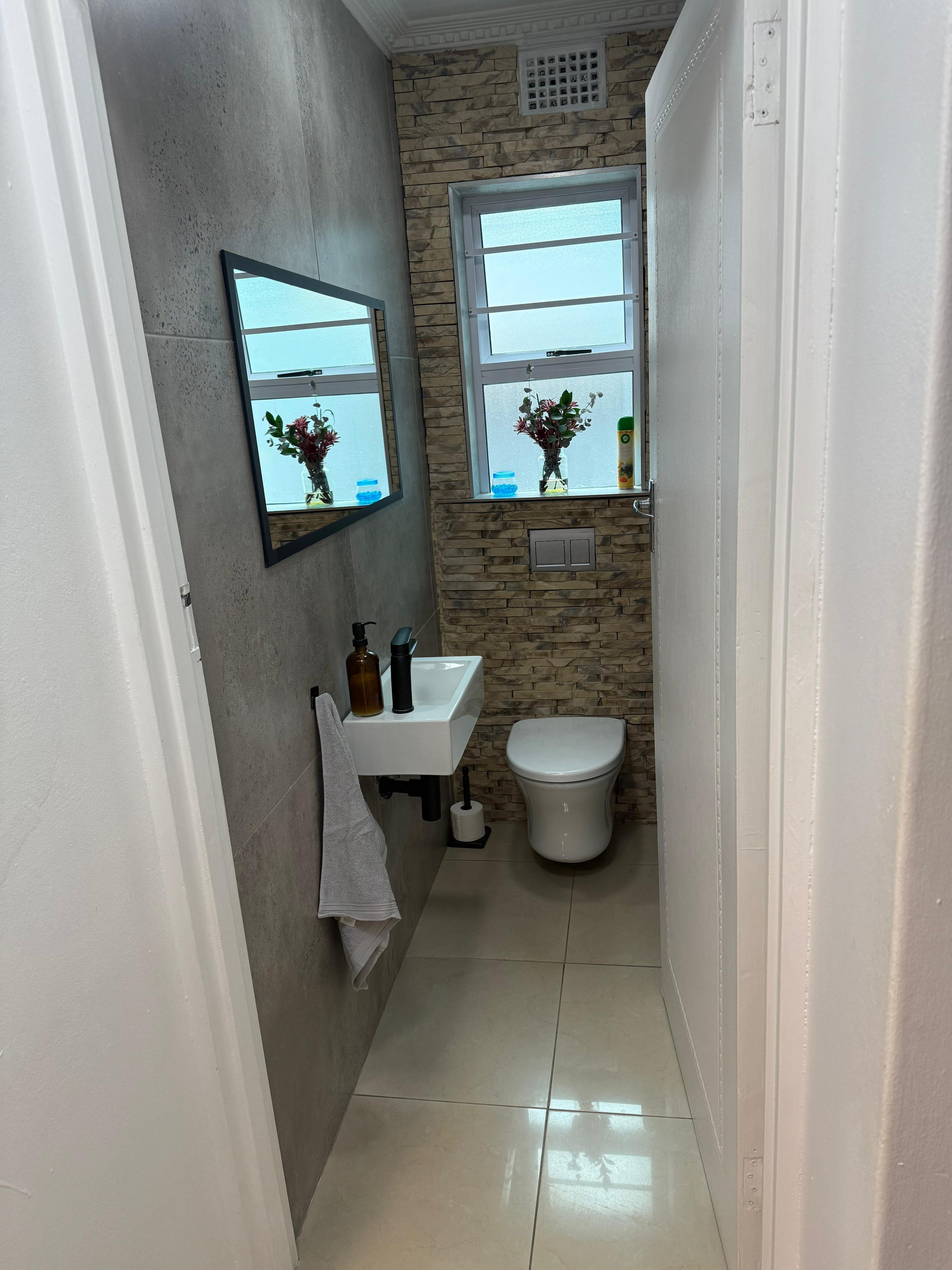 Aluminium windows throughout and stacker doors leading to the backyard enhance the space, creating a perfect indoor-outdoor flow. You'll also find a guest toilet and basin downstairs, plus one additional room that can be used as a bedroom or a storeroom.