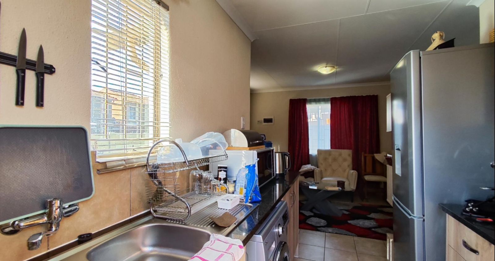 The generous living room provides a welcoming space for gatherings and everyday activities, complemented by a well-equipped kitchen that caters to all your culinary needs.