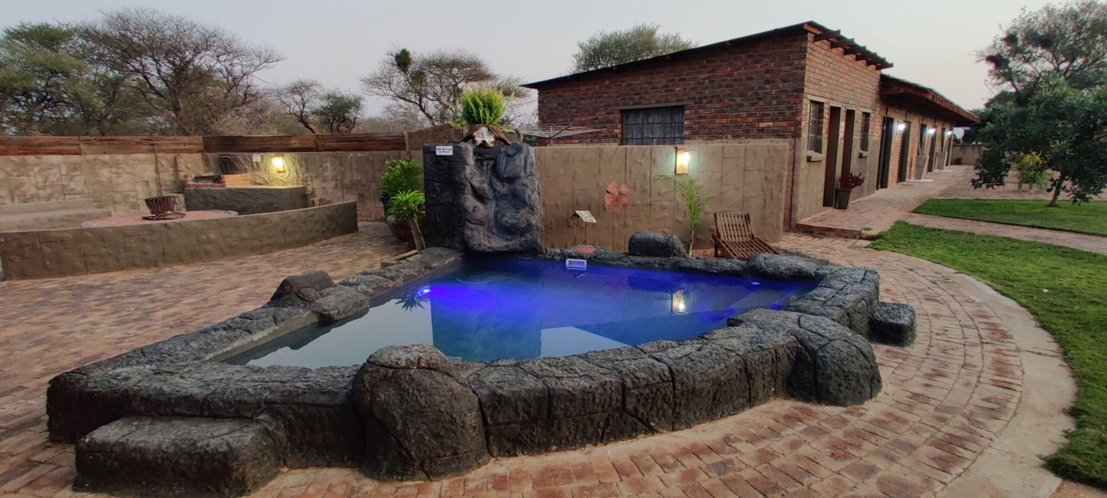 6-room lodge, each with en-suite, A/C, and built-in cupboards.