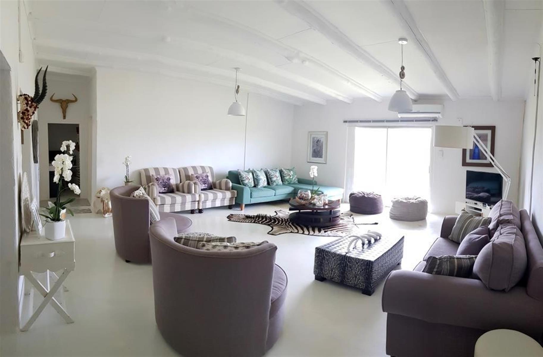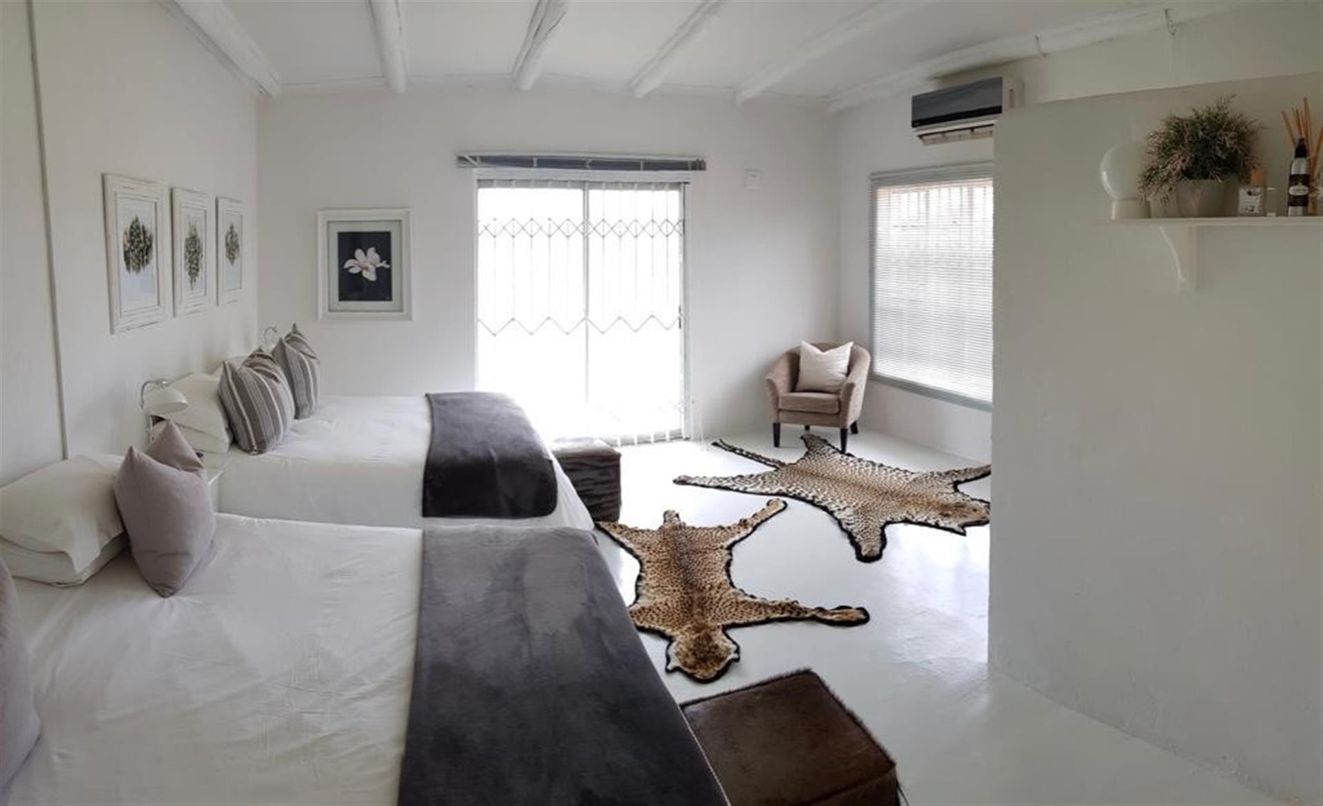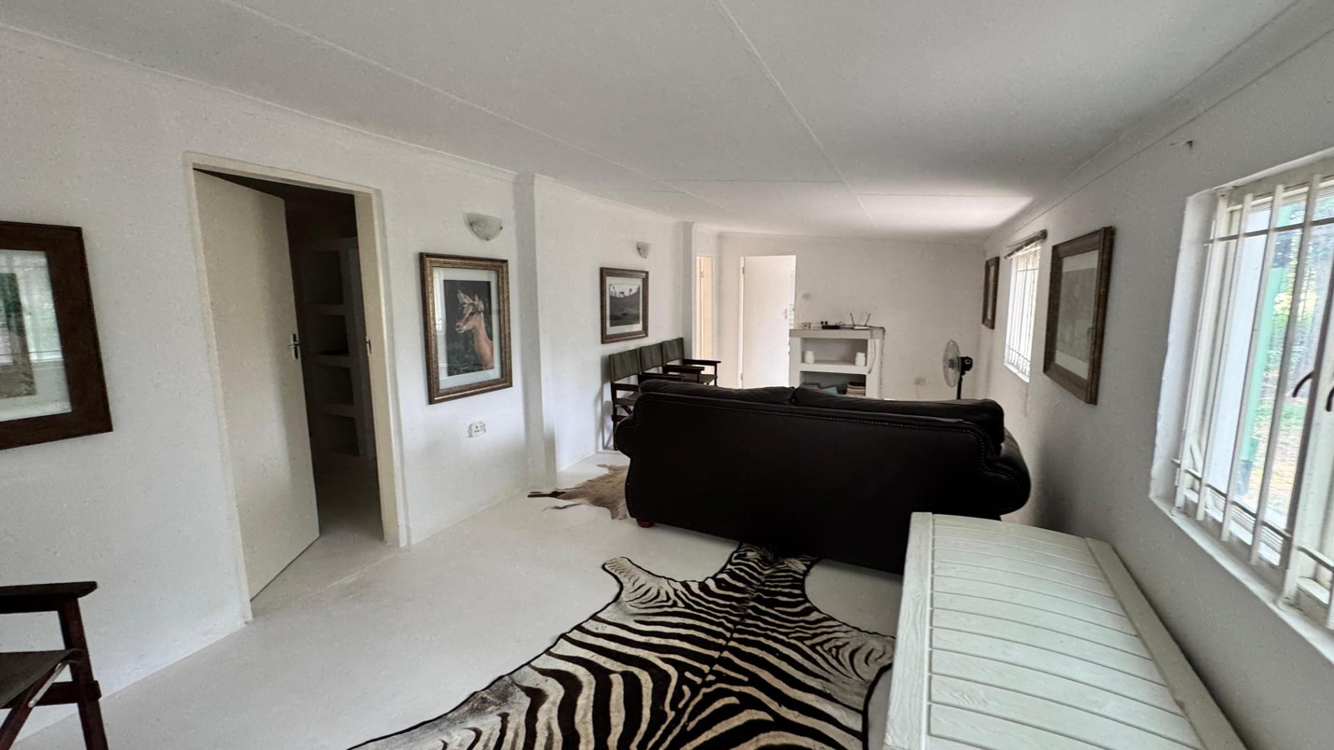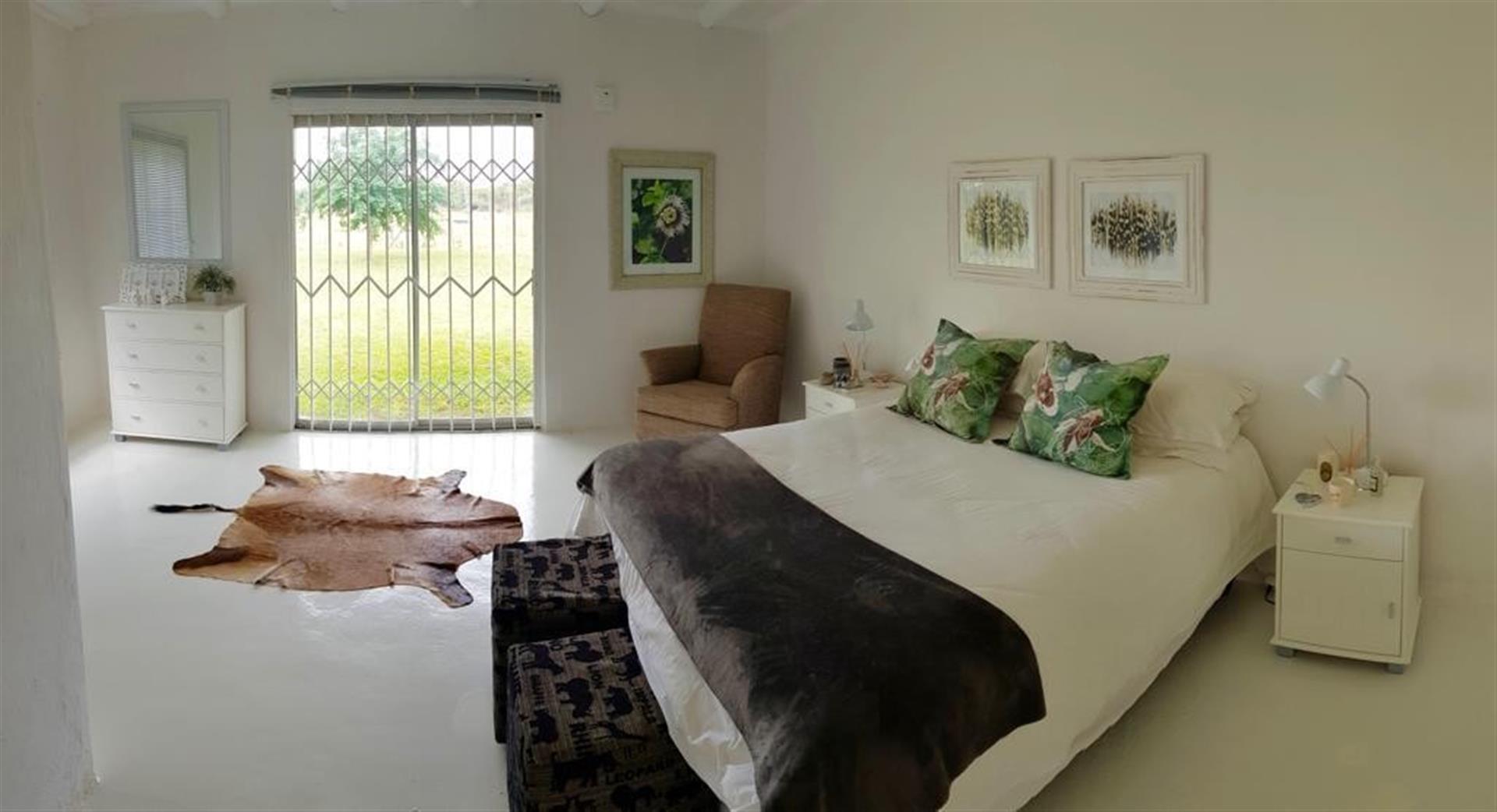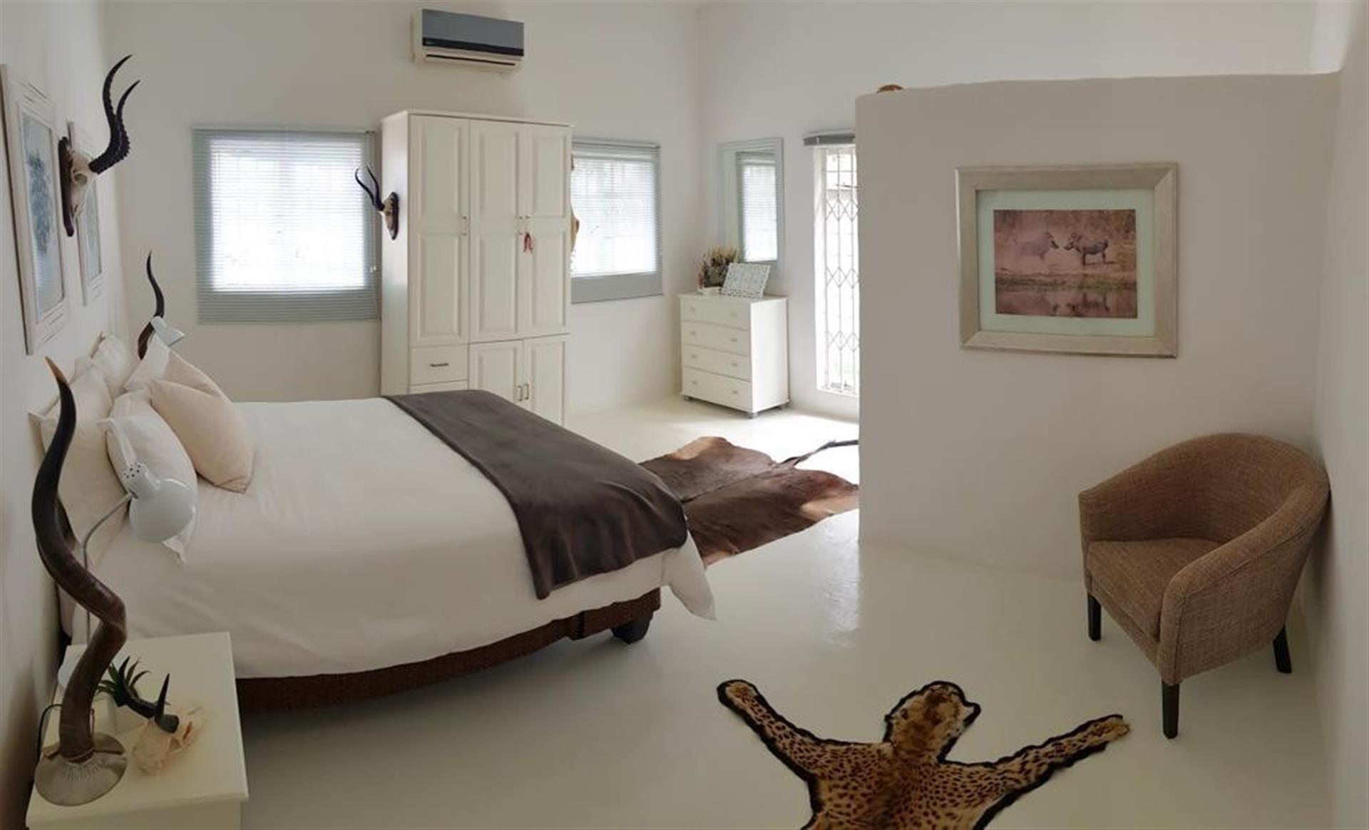 Main Residence: 4 Spacious lodge-style home with en-suite bedrooms, Main bedroom featuring bath, shower, and safe room. Additional bedrooms with showers provide comfort for guests or family.