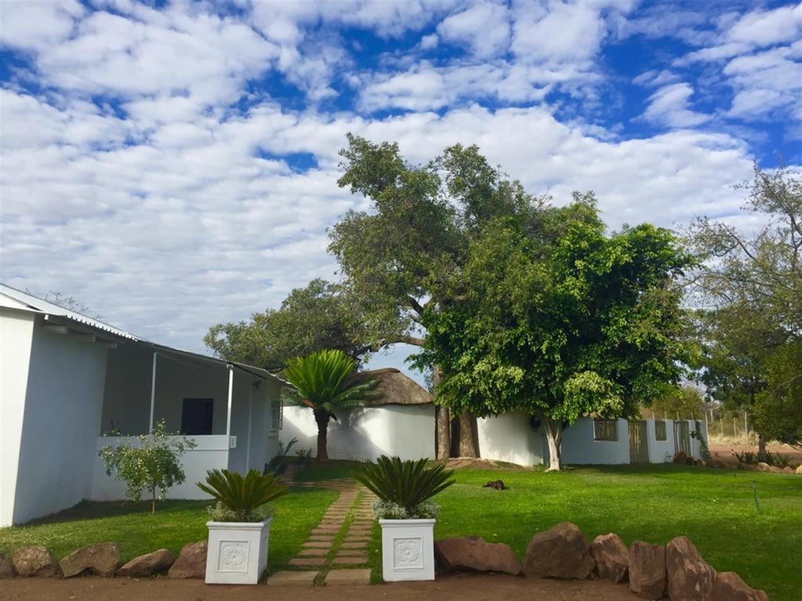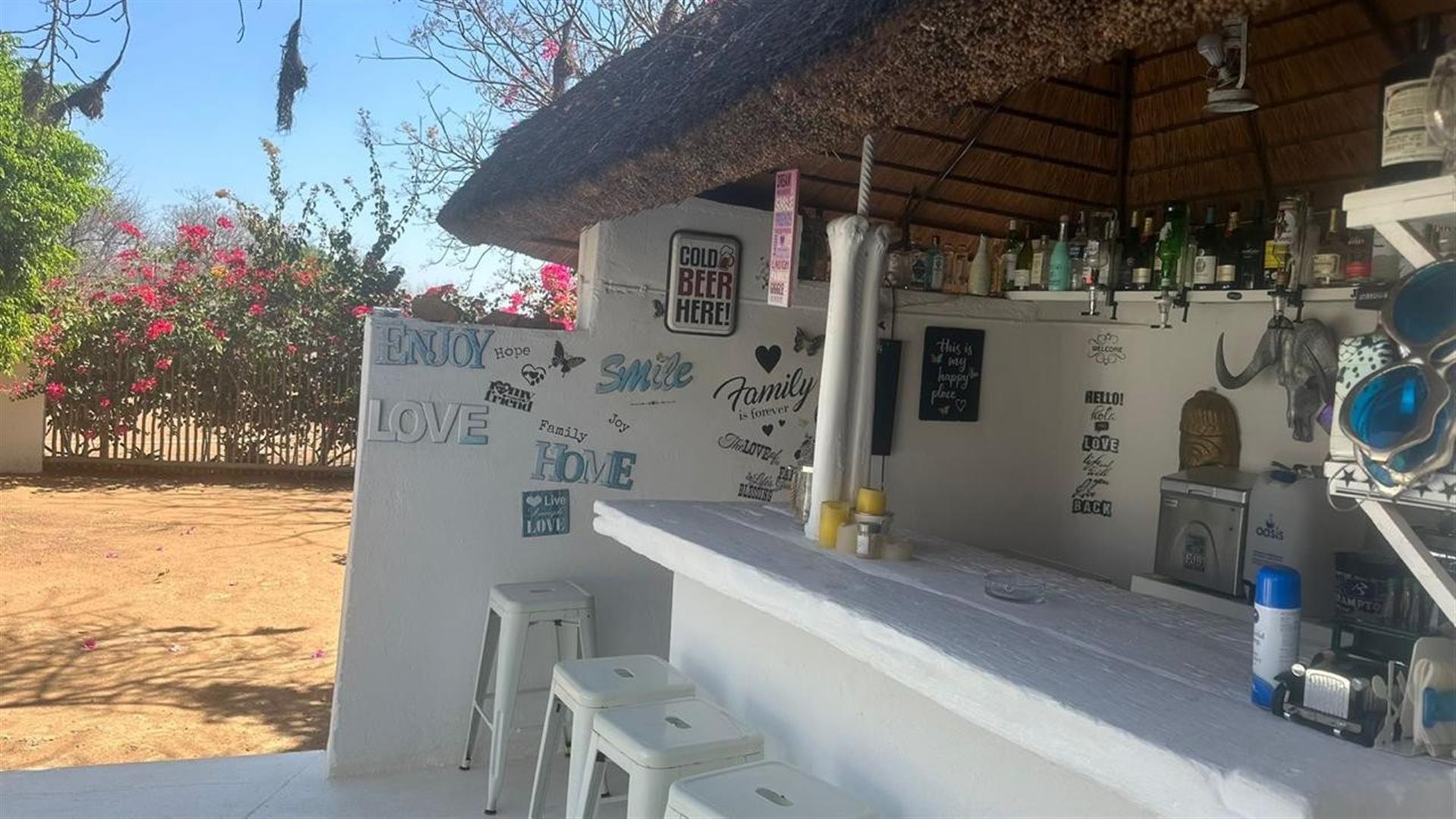 Excellent infrastructure including boreholes, Eskom power supply, boma with cool room, storage facilities, undercover parking, and carports