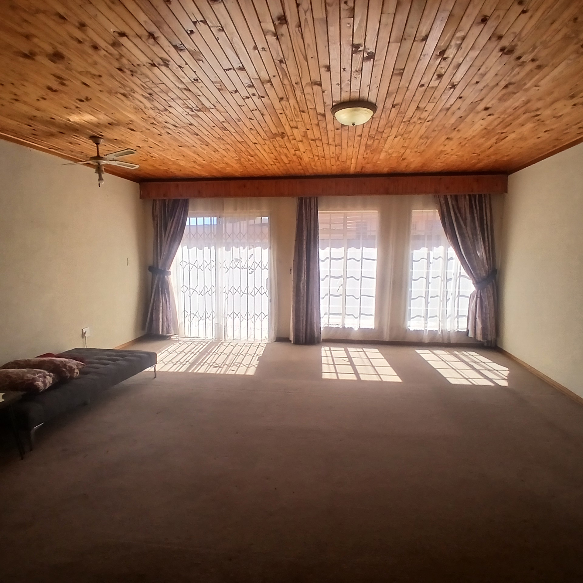 This home offers three generously sized bedrooms, all with built-in cupboards, plus a dedicated linen closet — rare in many modern homes. Both the lounge and master bedroom open onto an expansive, manicured garden — a serene outdoor space ideal for play, relaxation, and family memories.