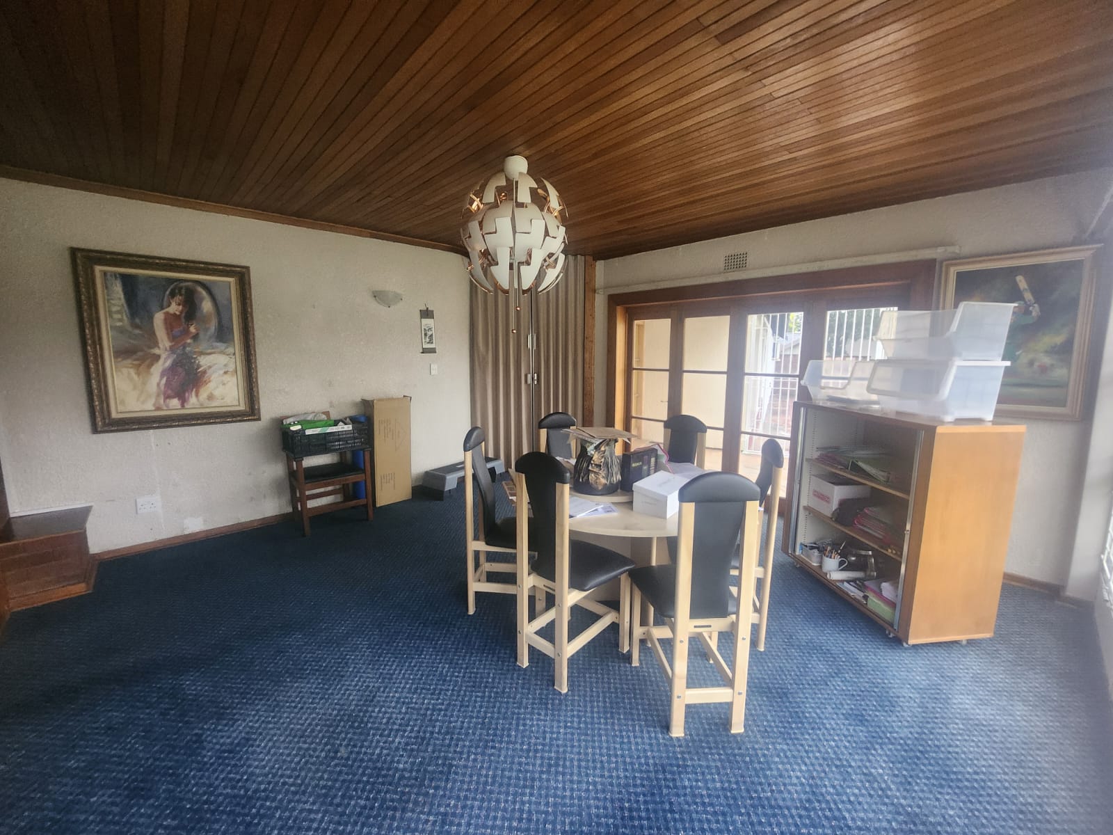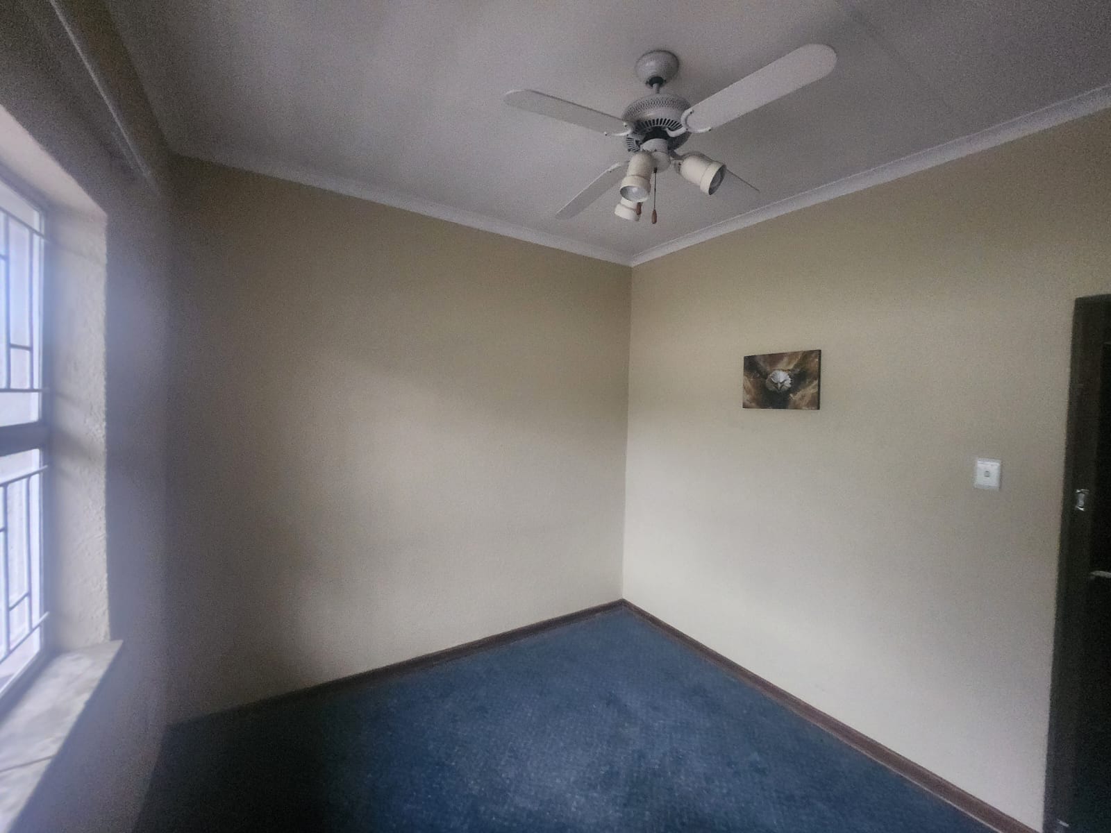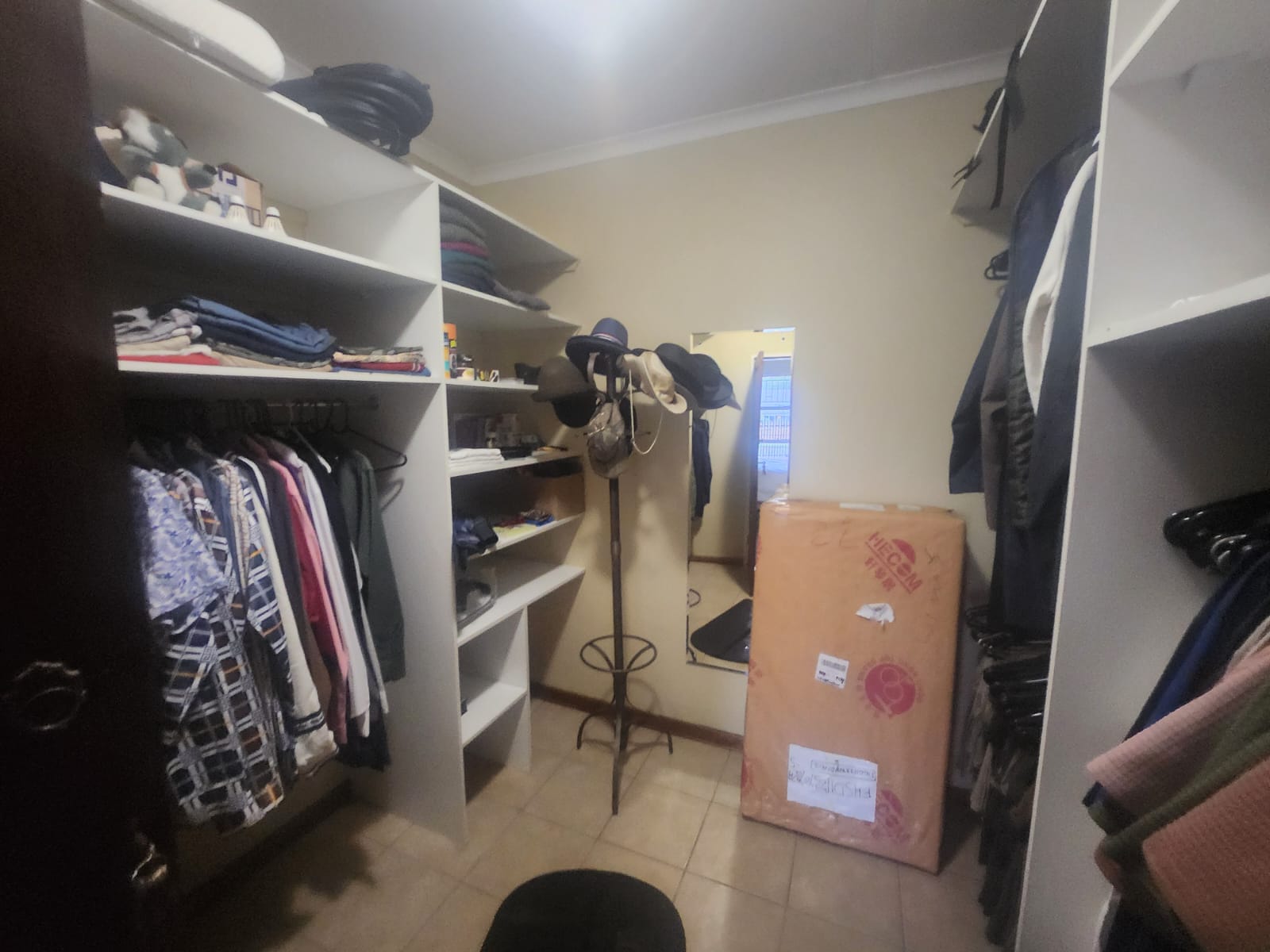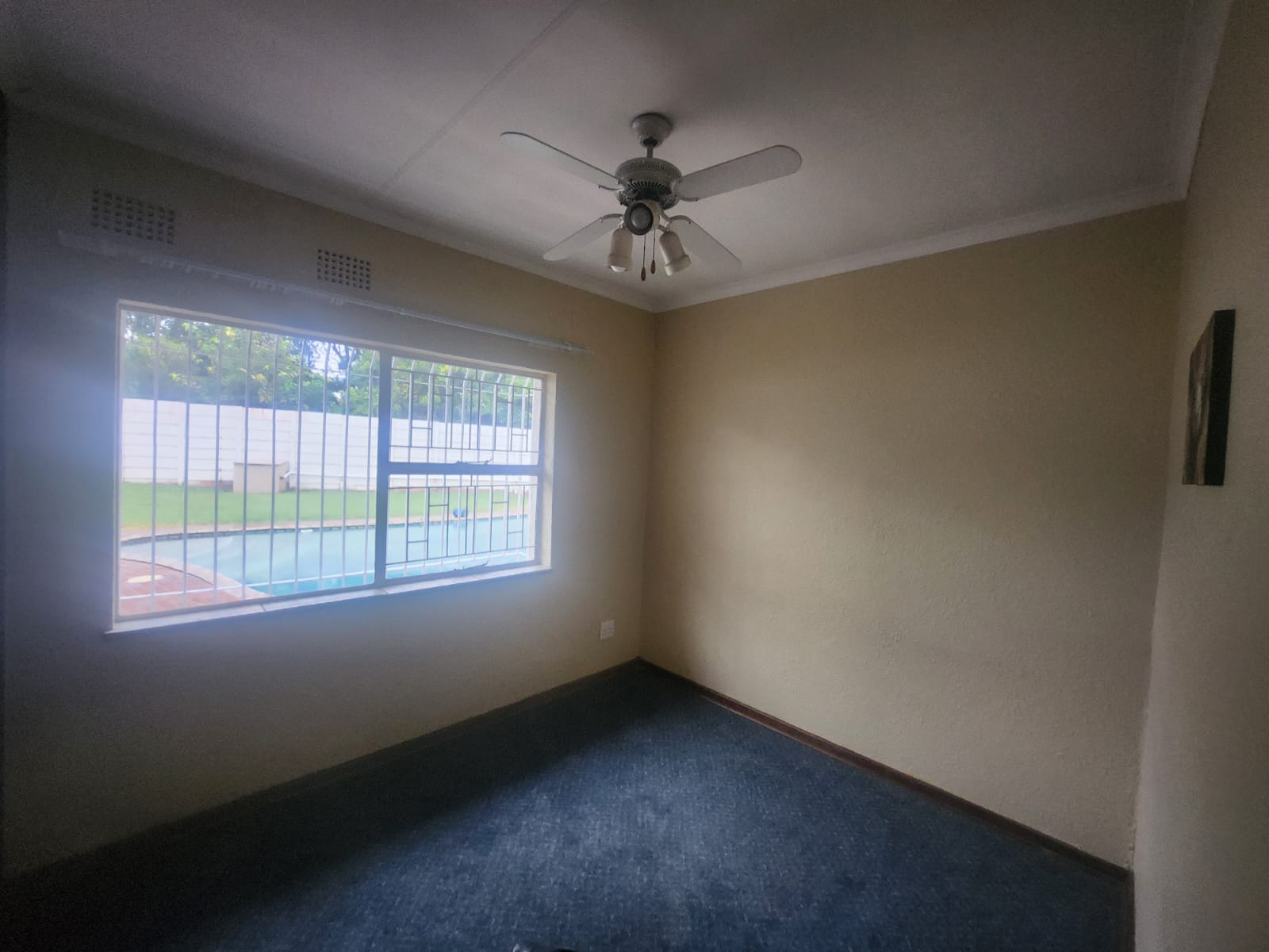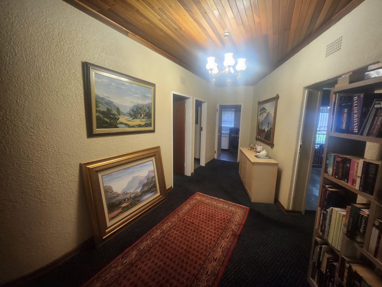 The home features three spacious bedrooms, each with built-in cupboards, plus a dedicated office/study fitted with bookshelves and additional storage.