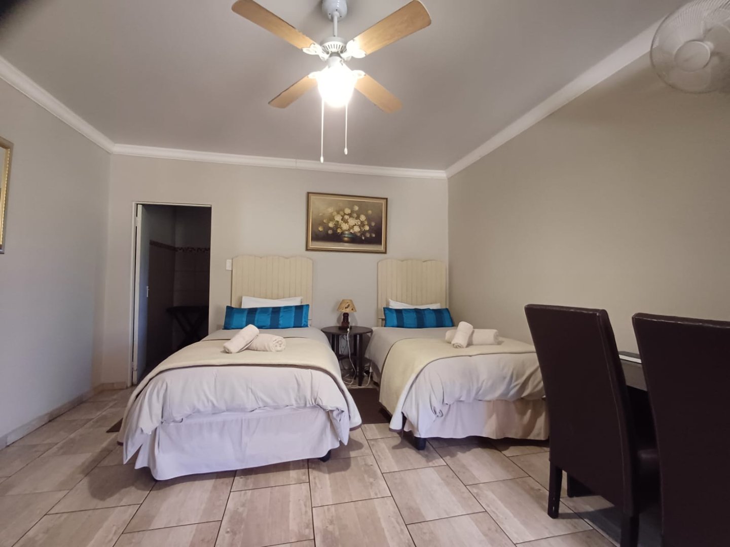 Set on a 3100m2 stand with a 957m2 roof size, the guesthouse comprises 25 stylishly furnished rooms and 2 fully equipped self-catering units. Every unit is en-suite and includes bar fridges, microwaves, ceiling fans, and tea and coffee-making facilities. Seventeen units are fitted with air conditioners, 15 feature DSTV, while the remaining 12 are equipped with open-view decoders. The self-catering units each include a kitchenette. Guests enjoy the convenience of safe undercover parking, a communal swimming pool, and a dedicated braai area, ensuring both comfort and relaxation.