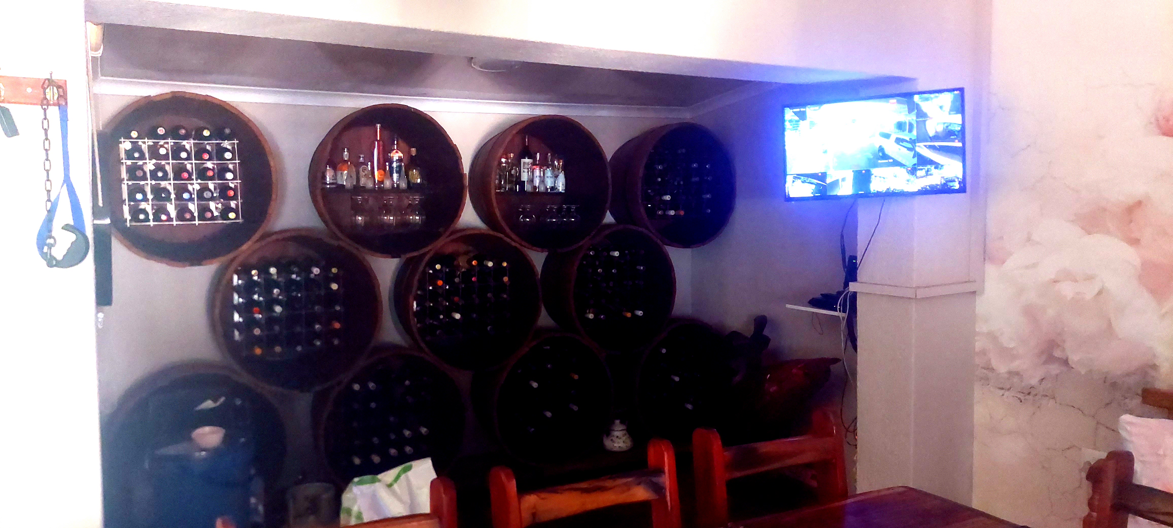 * Stunning built-in Wooden Bar, complete with 4 matching bar stools