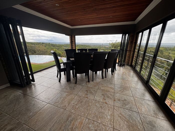 Embrace private game-reserve living near Bela Bela with sweeping Waterberg views, expansive patio with boma braai and sunken jacuzzi deck; includes a separate flat, five bedrooms and triple garage.