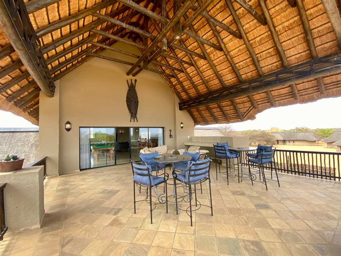 Entertainer's retreat in Zebula Golf Estate & Spa overlooking the Waterberg Mountains and golf course, featuring a massive entertainment area with a built-in bar and two covered patios.