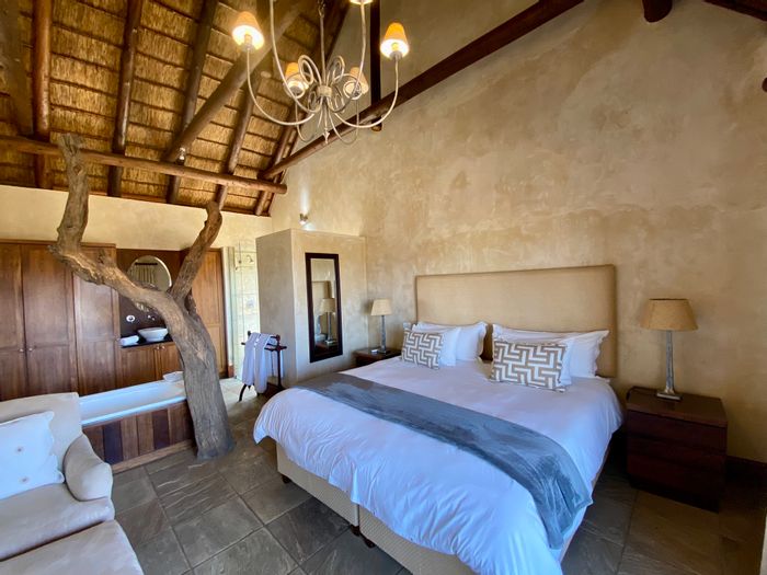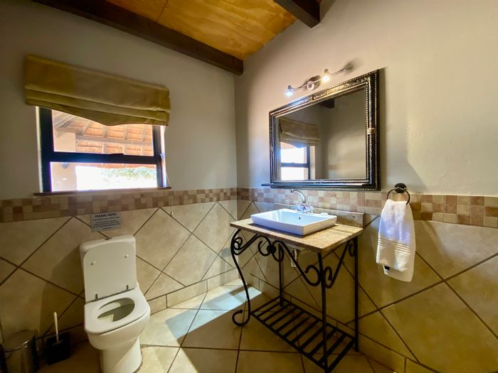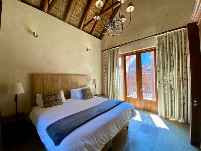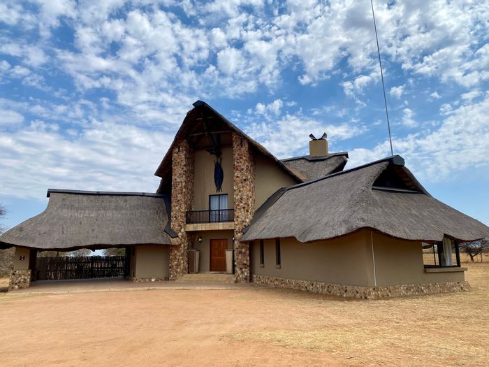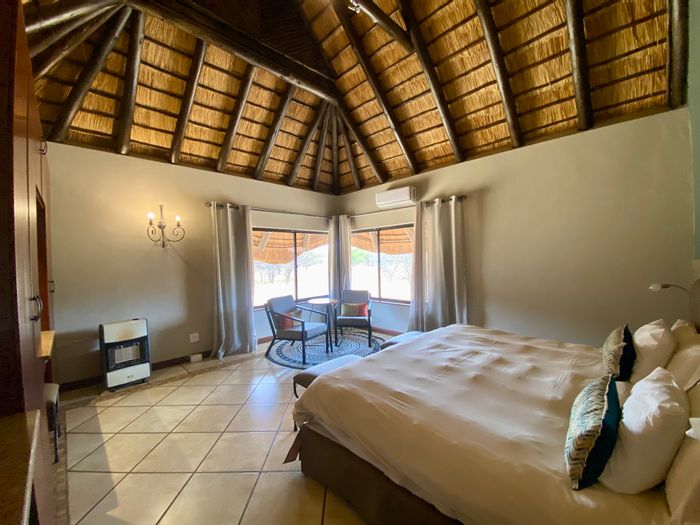 Escape to a bushveld retreat in Waterberg, Limpopo — game-fenced 5ha with free-roaming impala, solar-powered pool and outdoor shower; turn-key self-catering lodge with five bedrooms, four bathrooms.