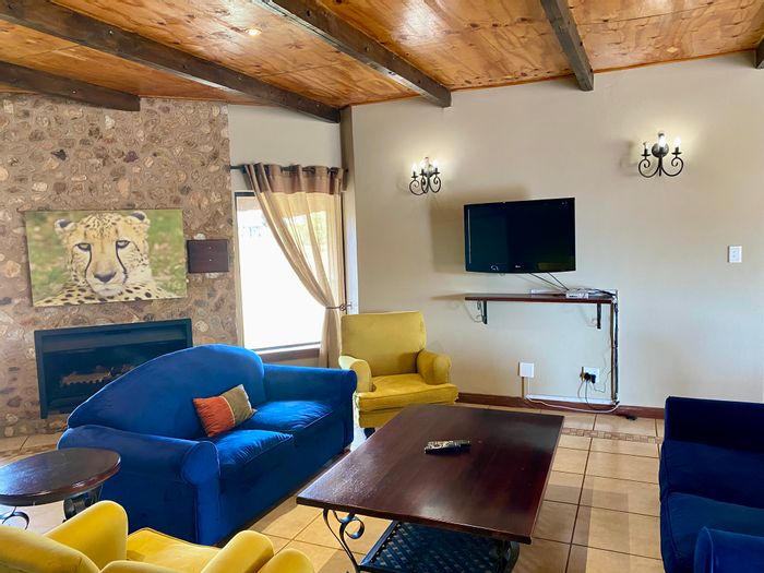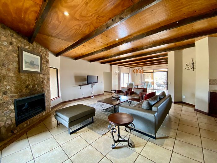 Resort-style living with Waterberg Mountain views at Zabula Golf Estate — each bedroom a private cottage, modern kitchen, spacious entertainment area and outdoor boma, steps from golf and spa.