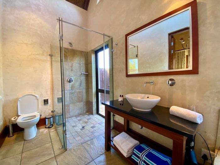 Entertain in true bushveld resort style steps from the clubhouse in exclusive southeastern Zebula Golf Estates and Spa, with an entertainment deck overlooking the Savannah Plains and four bedrooms.