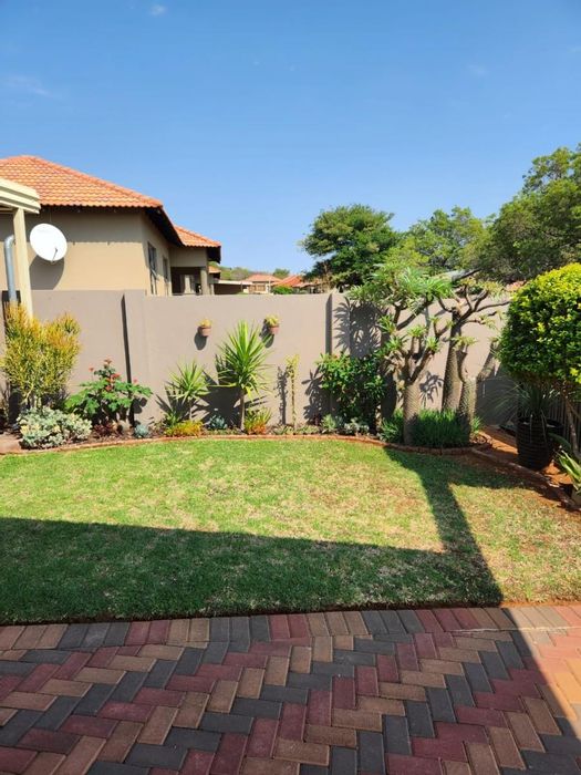 Lock-up-and-go living in the heart of Bela Bela, secure complex with modern open-plan entertaining and a large covered stoep with roll-down canvas — three bedrooms, two baths, double garage.