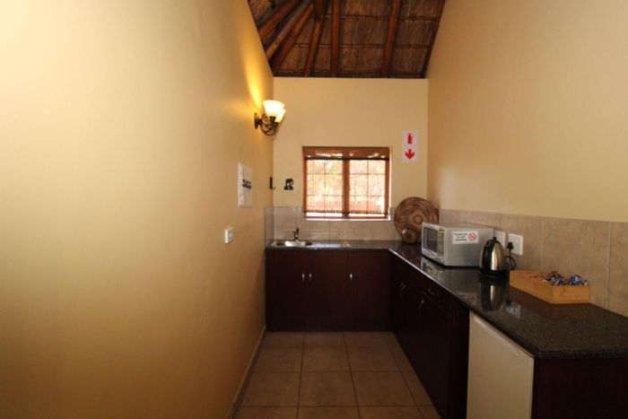 Resort-style living with Waterberg Mountain views at Zabula Golf Estate — each bedroom a private cottage, modern kitchen, spacious entertainment area and outdoor boma, steps from golf and spa.