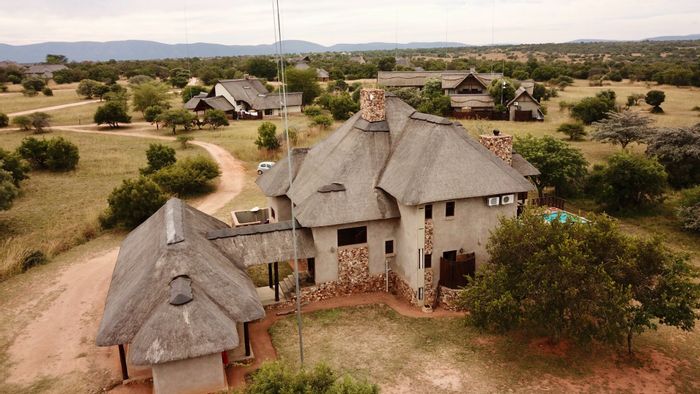 Bushveld retreat at Zebula Golf Estate, two hours from Johannesburg, perfect for entertaining with a large lapa, direct 18th-hole access and wildlife views; nine bedrooms, six bathrooms, two single garages.