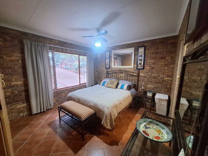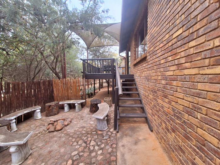 Bushveld living in Leeupoort with a covered built-in braai for effortless outdoor entertaining; includes a one-bedroom flatlet, four bedrooms and three bathrooms.