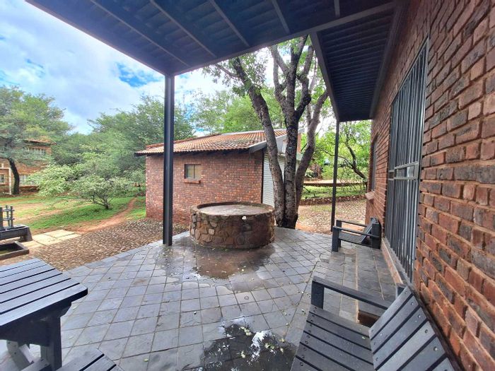 Bushveld living in Leeupoort with a covered built-in braai for effortless outdoor entertaining; includes a one-bedroom flatlet, four bedrooms and three bathrooms.