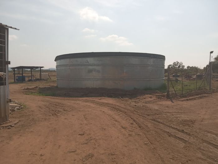 108ha farm with 3 bedrooms, 3 bathrooms, 7 rental houses, and operational facilities including arable land and boreholes.
