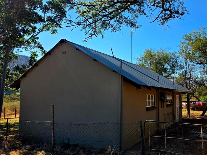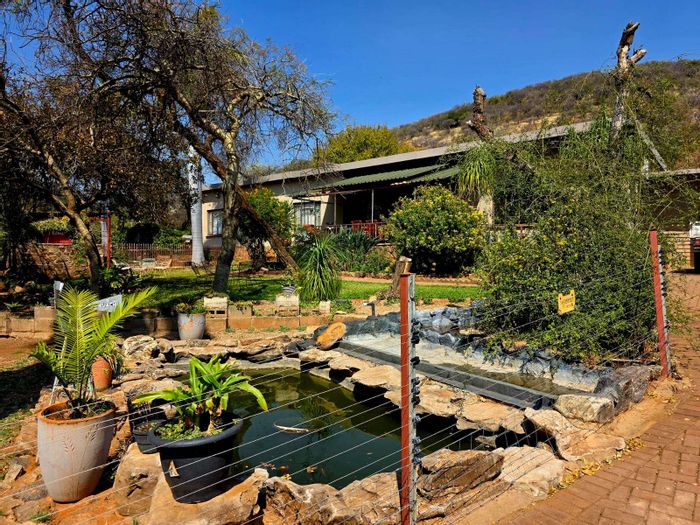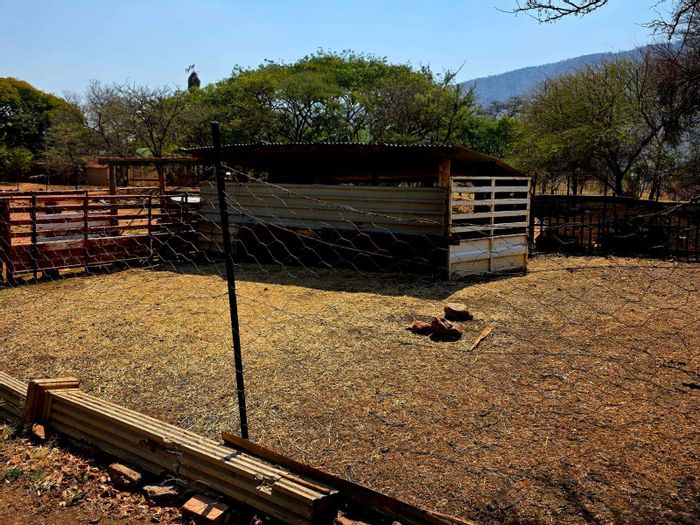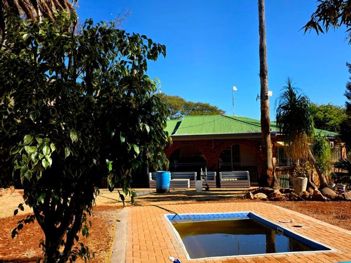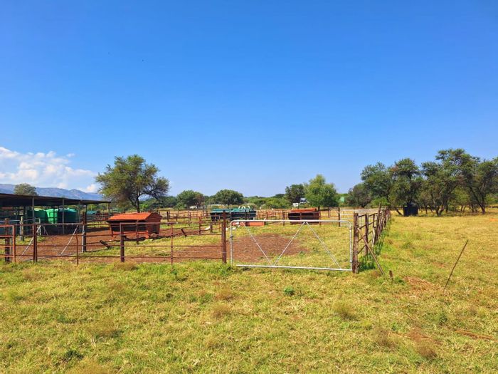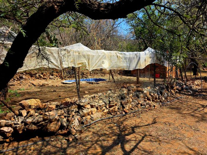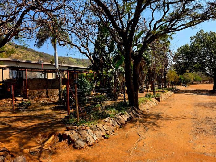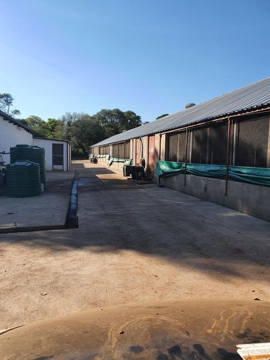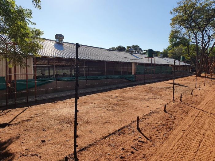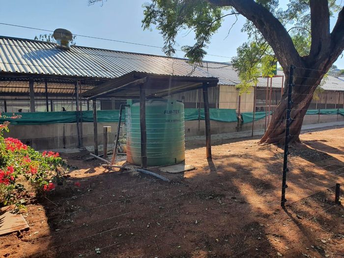 Country lifestyle and small-scale farming 5km from Mokopane beneath the Waterberg Mountains — pool, flatlet, large chicken houses (±20,000 capacity), fruit orchards, solar-equipped main home. 4 beds, 2 baths.